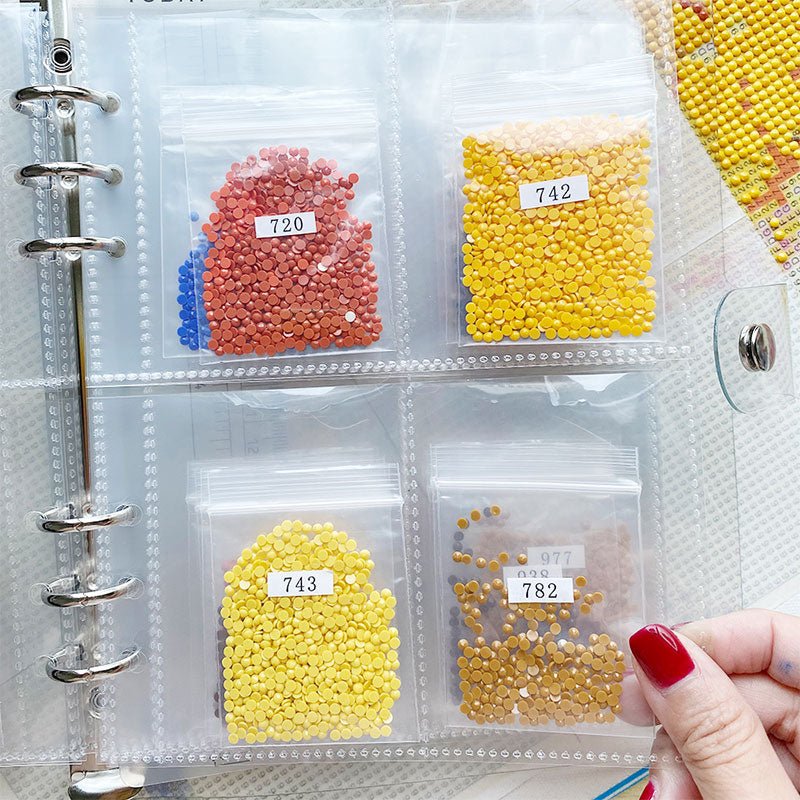 • Le paquet comprend: 1x Classeur Unique-Diamond / 100x Sacs Zippés / Autocollant DMC / 10x Feuilles Divisées / 1x Autocollant Blanc