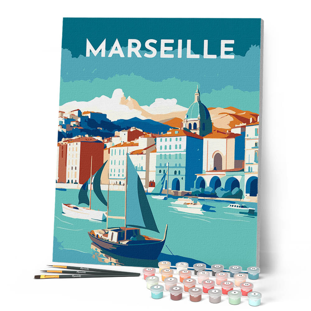 Kit complet de peinture par numéro avec la toile déjà montée sur chassis.