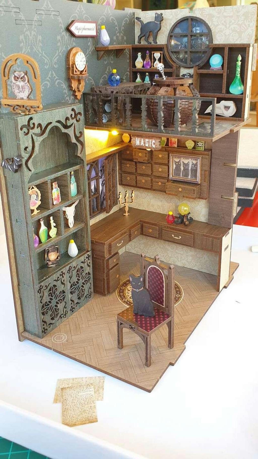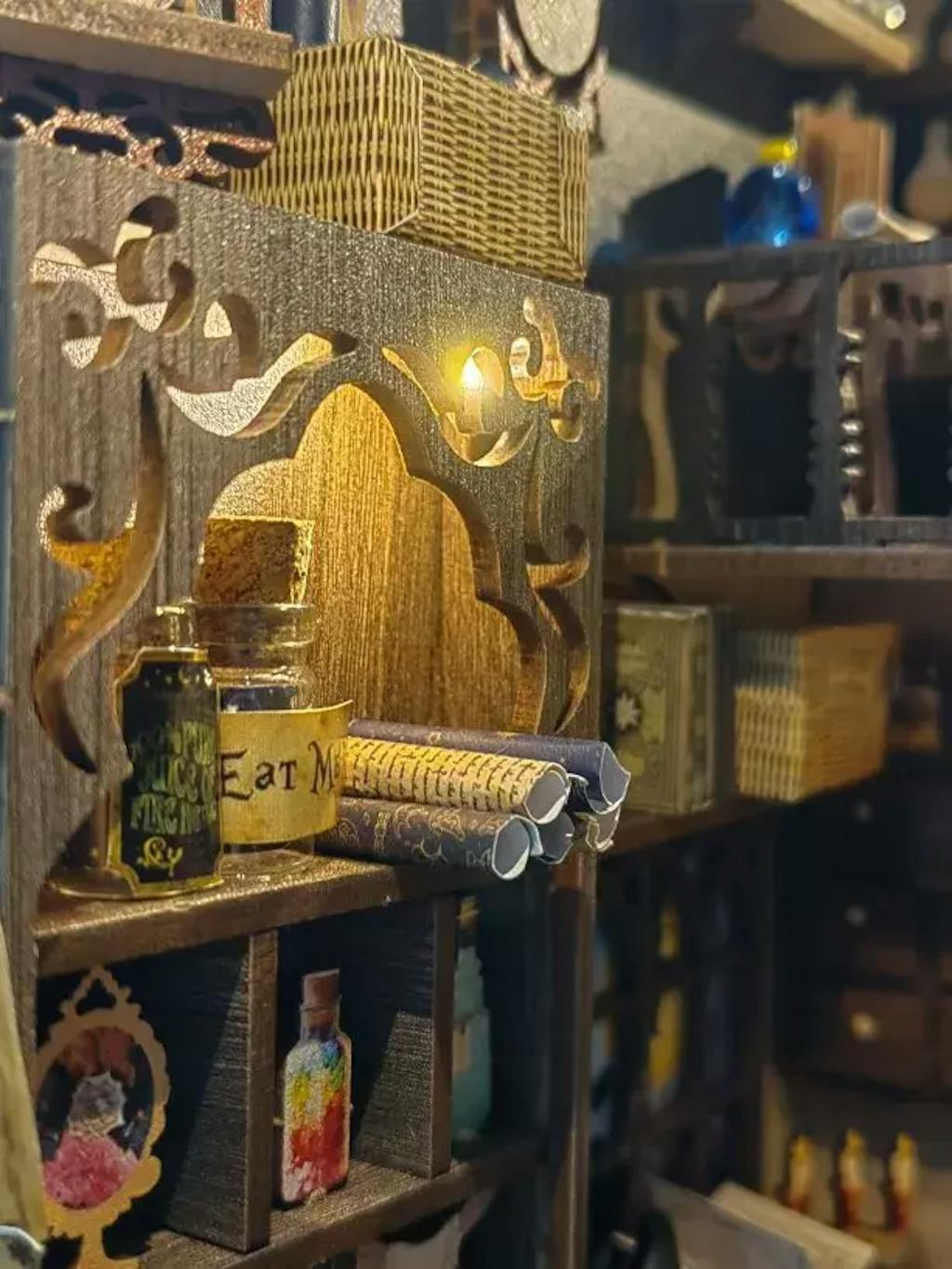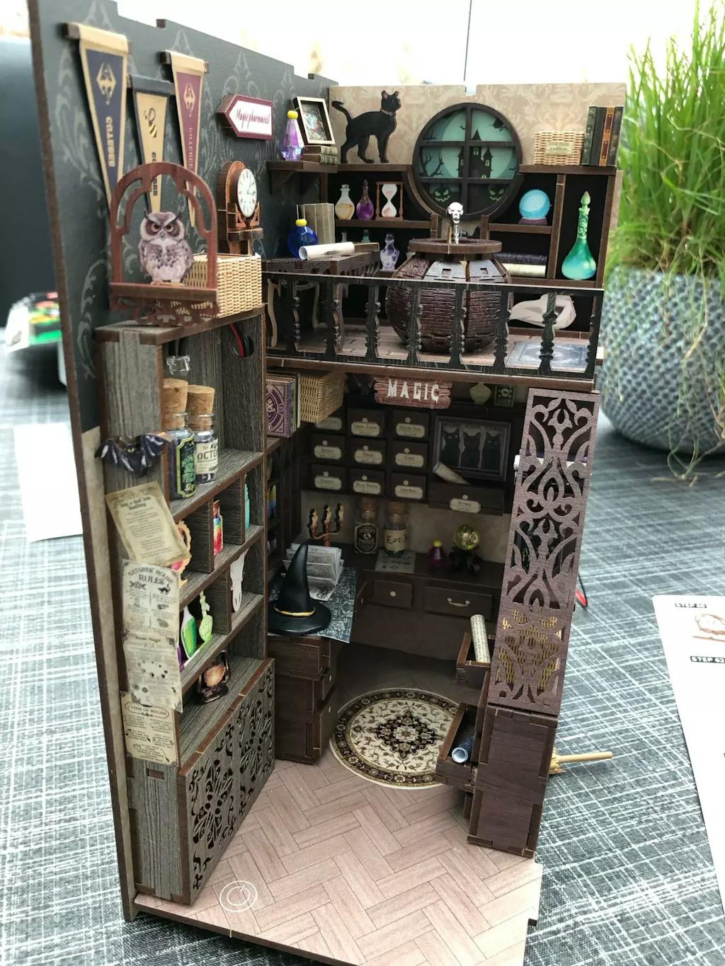 Apportez l'enchantement du Pharmacien Magique à votre décoration d'intérieur avec ce book nook. Assemblez, décorez et illuminez votre monde miniature !