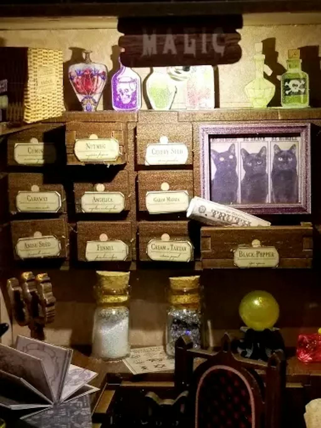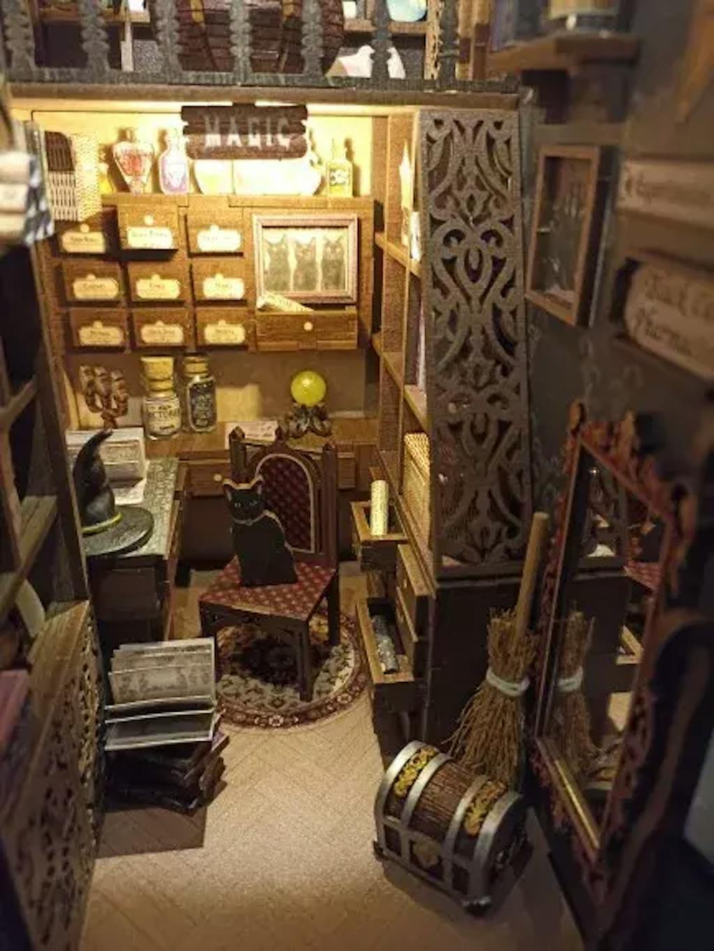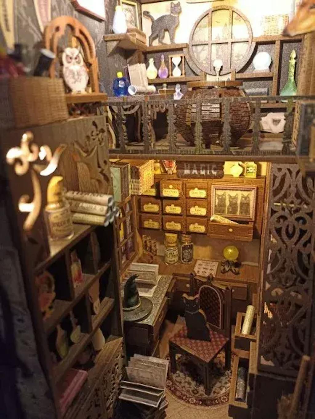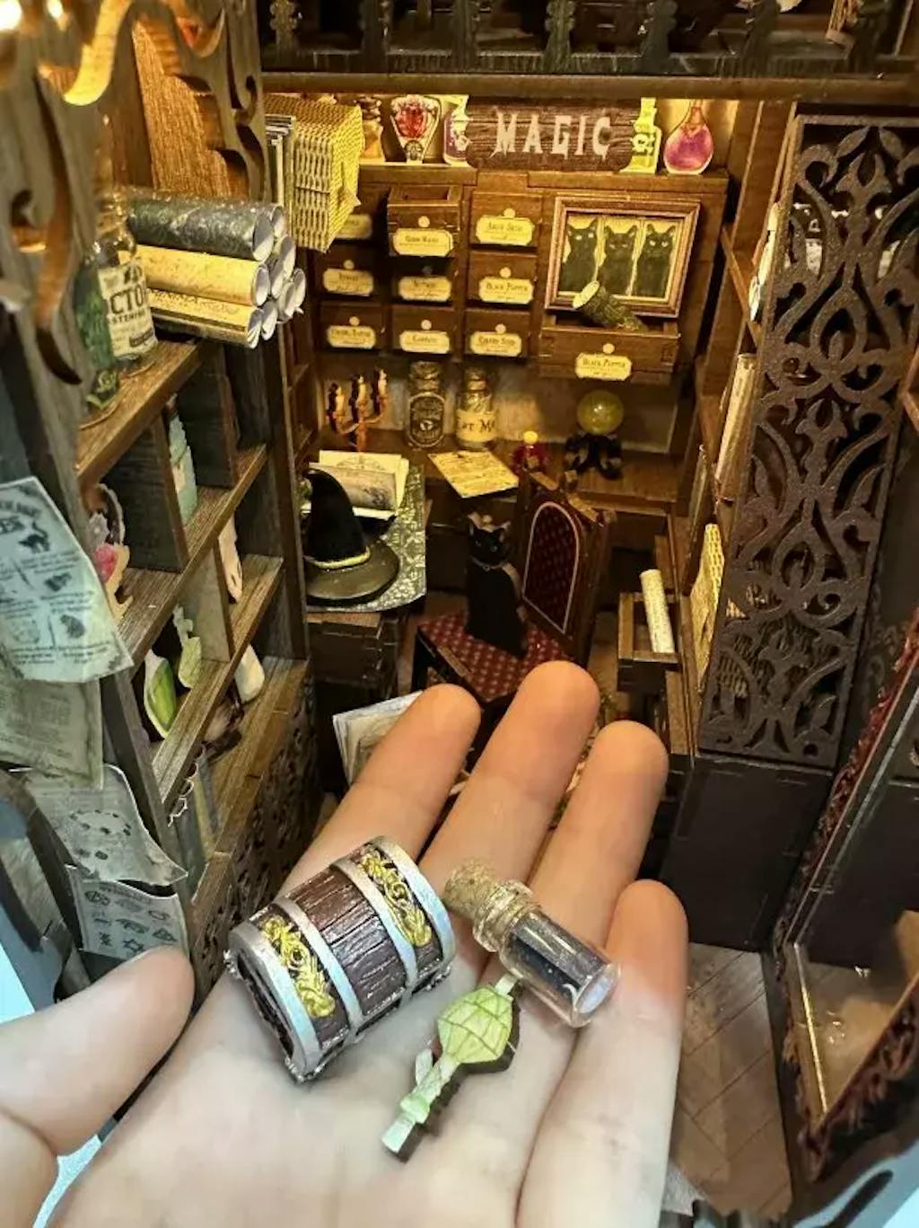 Apportez l'enchantement du Pharmacien Magique à votre décoration d'intérieur avec ce book nook. Assemblez, décorez et illuminez votre monde miniature !