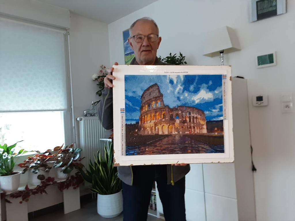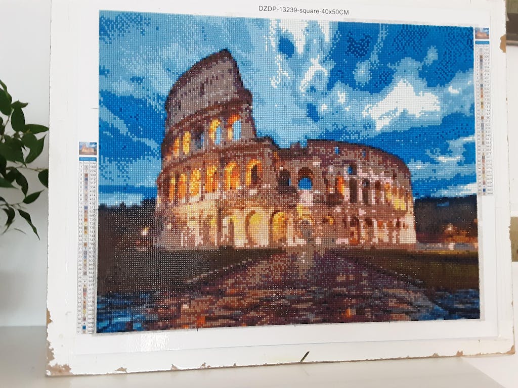 1 toile adhésive de qualité supérieure, numérotée en fonction du motif à réaliser et déjà tendue sur châssis. Une plaque en bois au dos de la toile permet une parfaite rigidité pour appliquer les diamants.