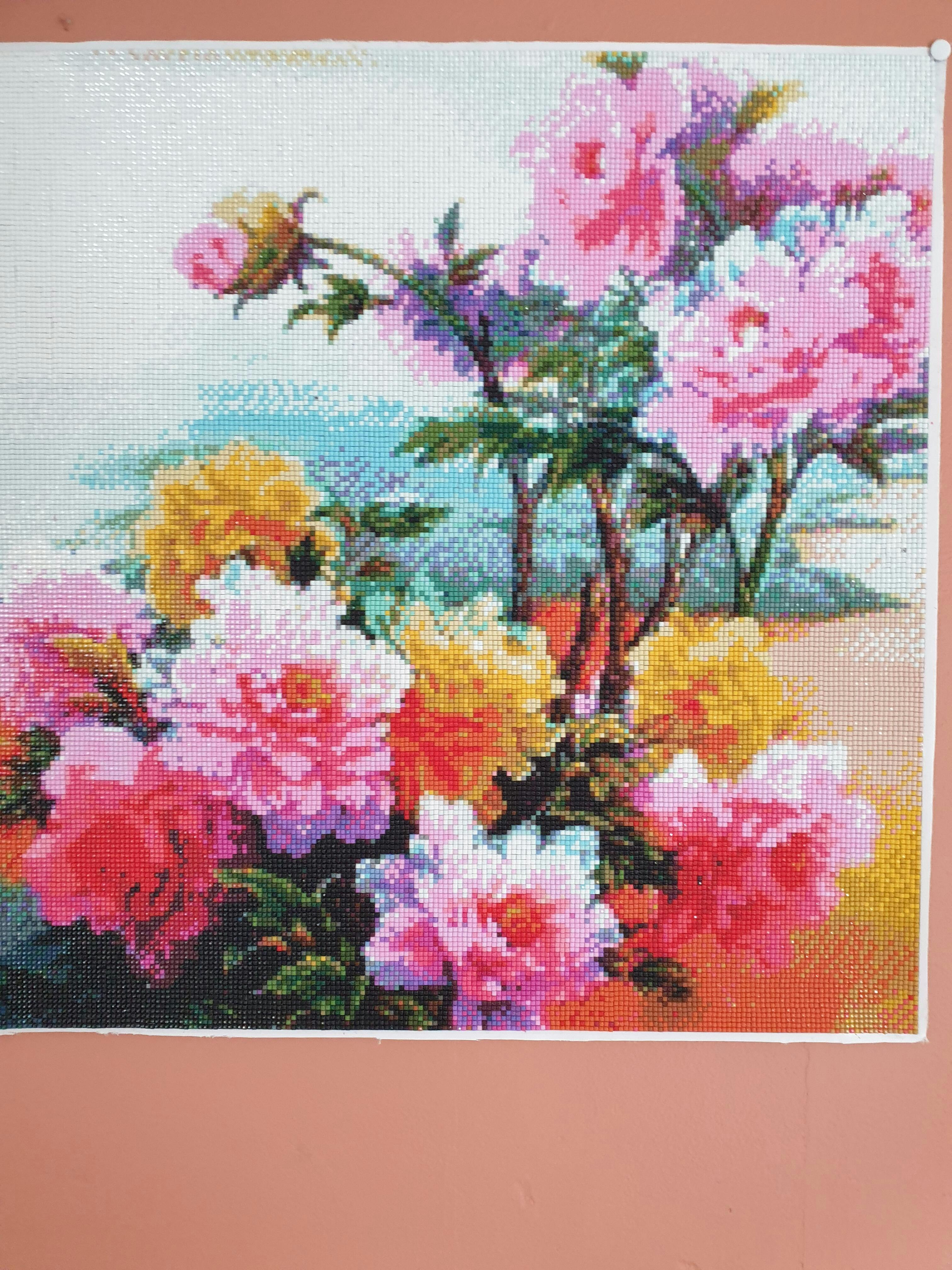 4) Une fois votre broderie terminée, appuyez légèrement sur les diamants avec votre main ou un livre afin de s'assurer de leur maintien final sur la toile.