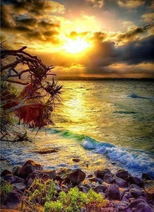 Broderie Diamant - Vagues près des Rochers