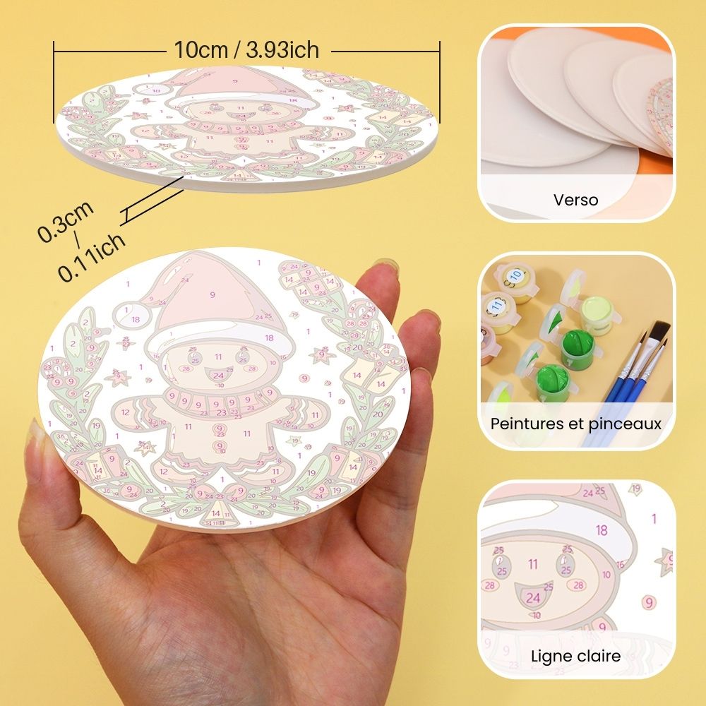 Peinture par numéros Dessous de Verre 15cm (6 pièces) - Noël Fait Main