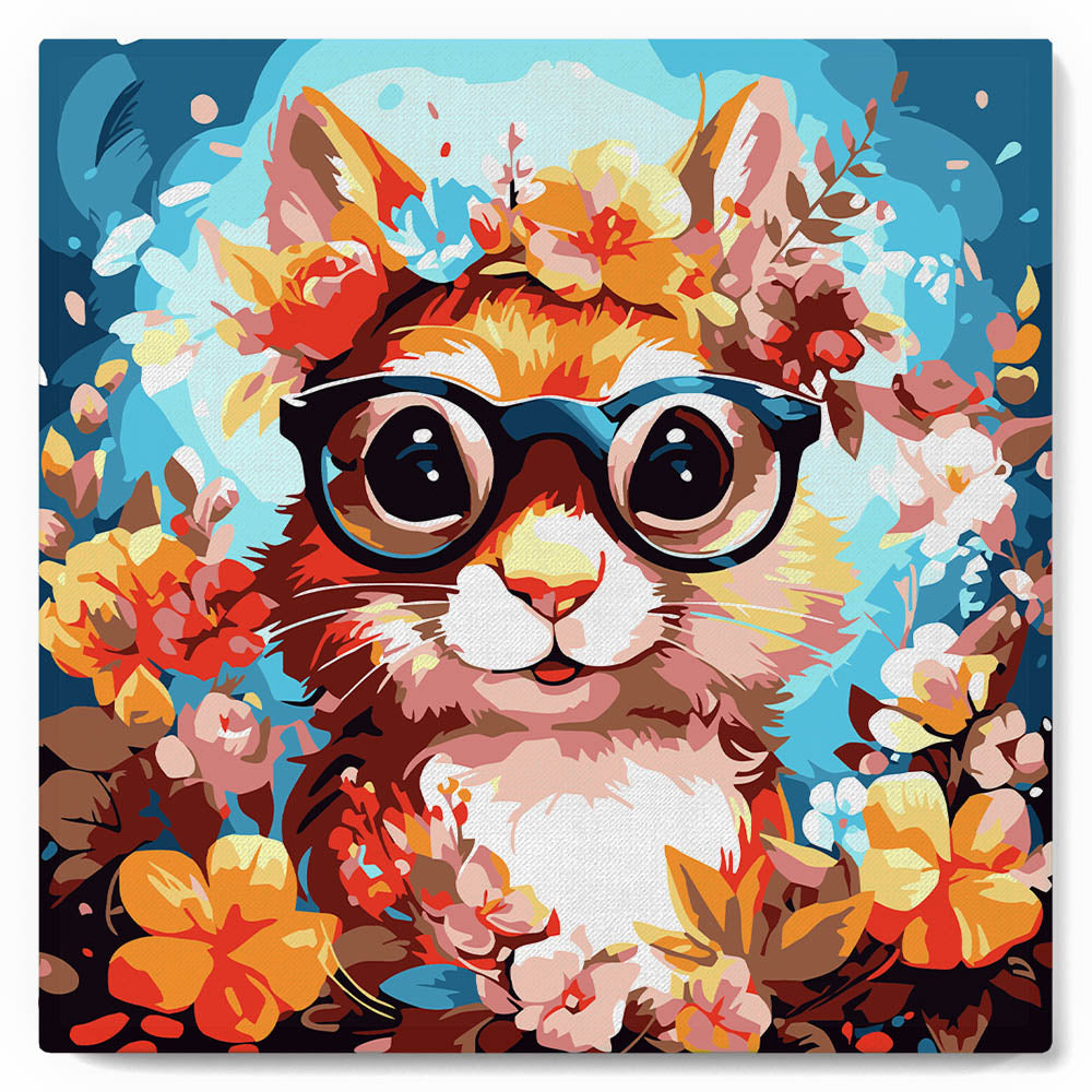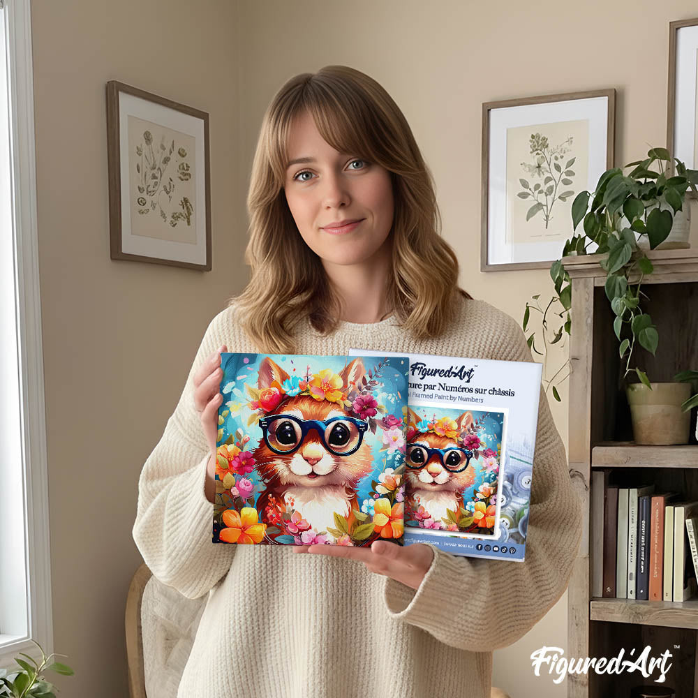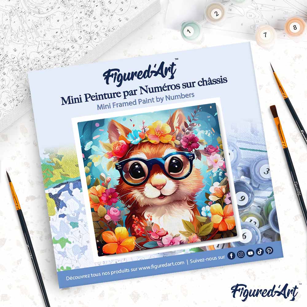 Modèle : Mini Peinture par Numéros 20x20cm avec cadre Écureuil fantaisie et fleurs