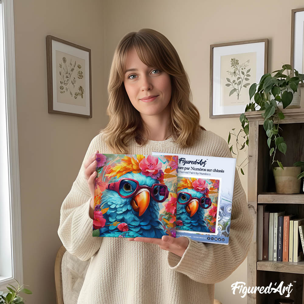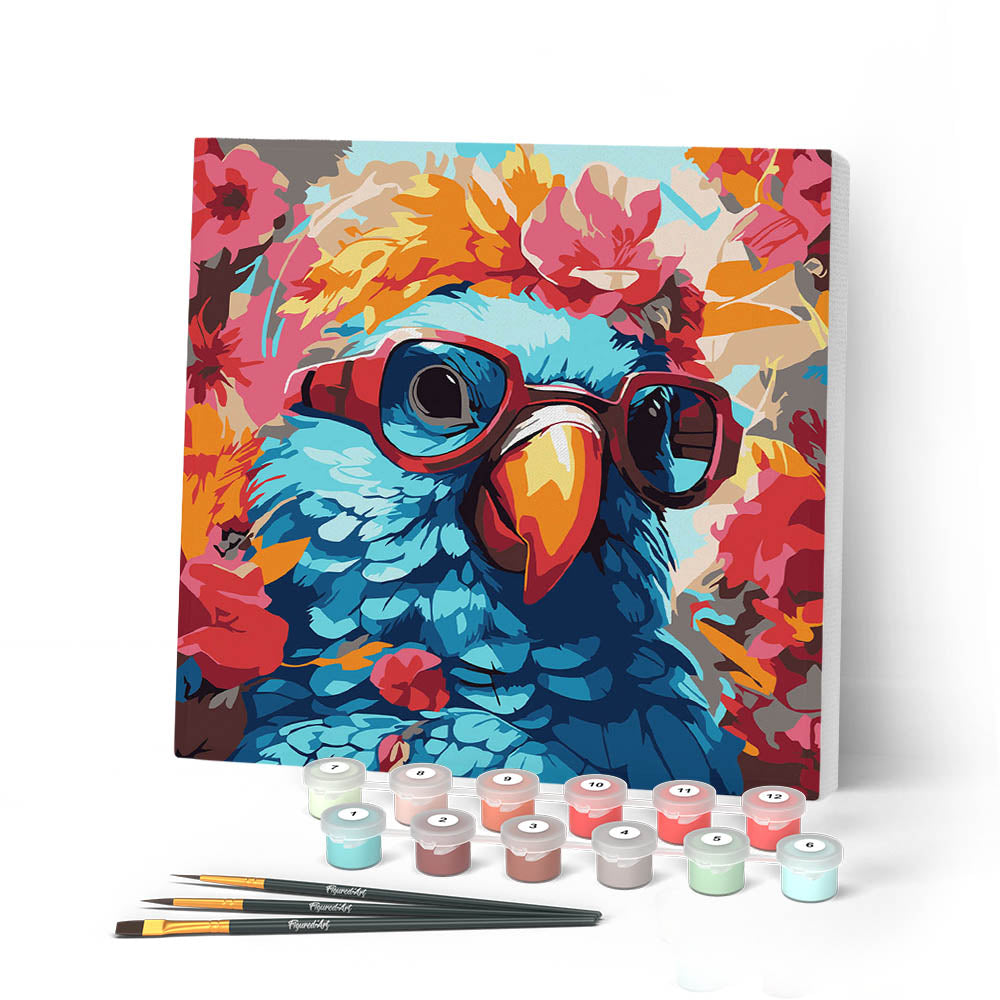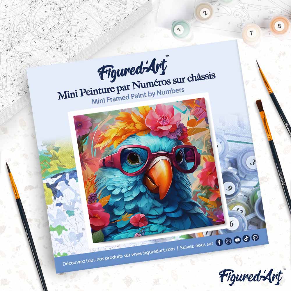 Modèle : Mini Peinture par Numéros 20x20cm avec cadre Perroquet fantaisie et fleurs