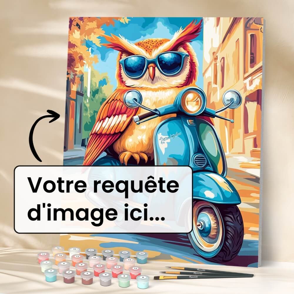 Vous décrivez ce que vous voulez, l’intelligence artificielle génère l’image, puis nous la transformons en kit de peinture par numéros Figured'Art, prêt à peindre.
