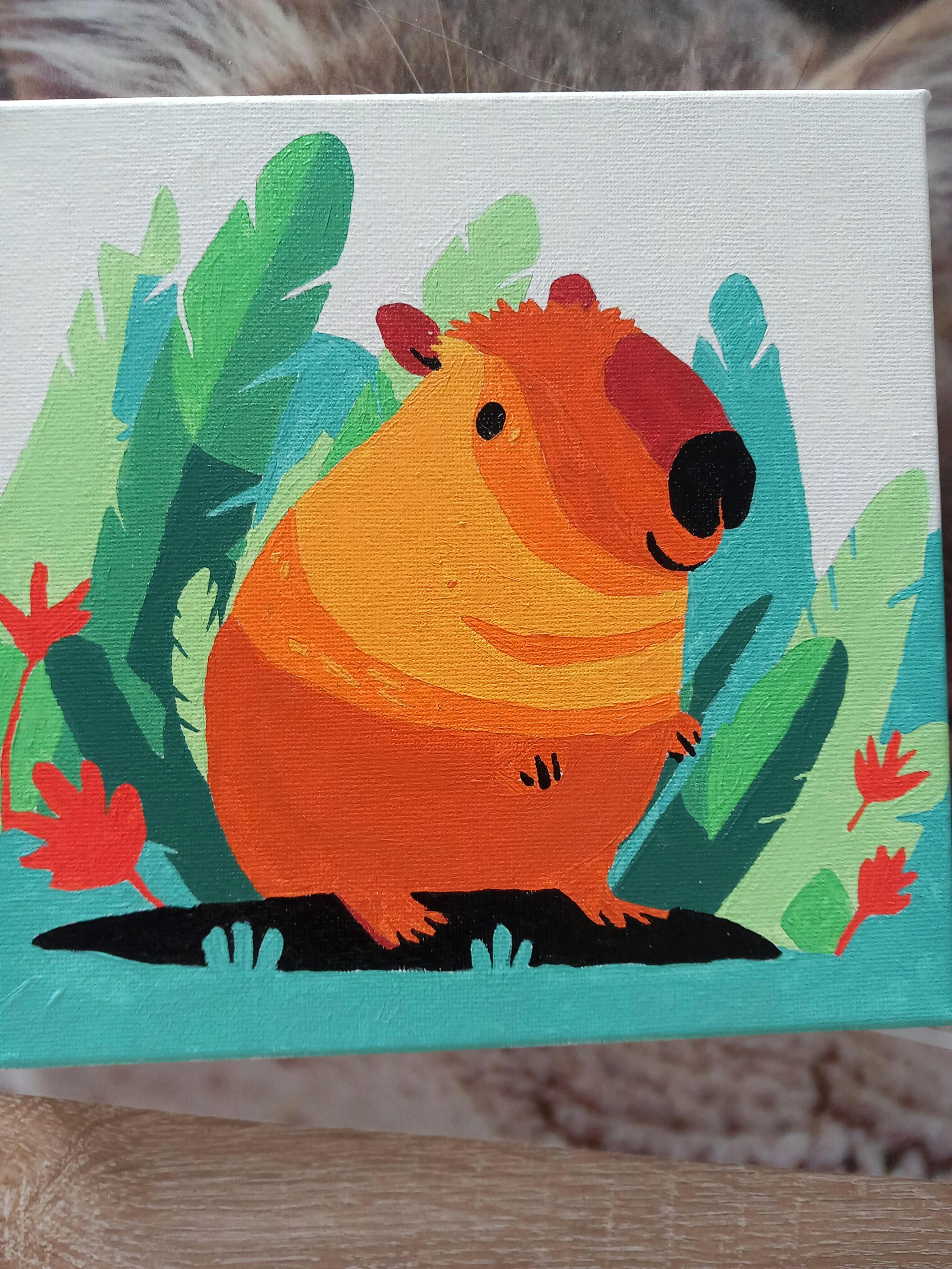 Modèle : Mini Peinture par Numéros 20x20cm avec cadre Capybara Tropical