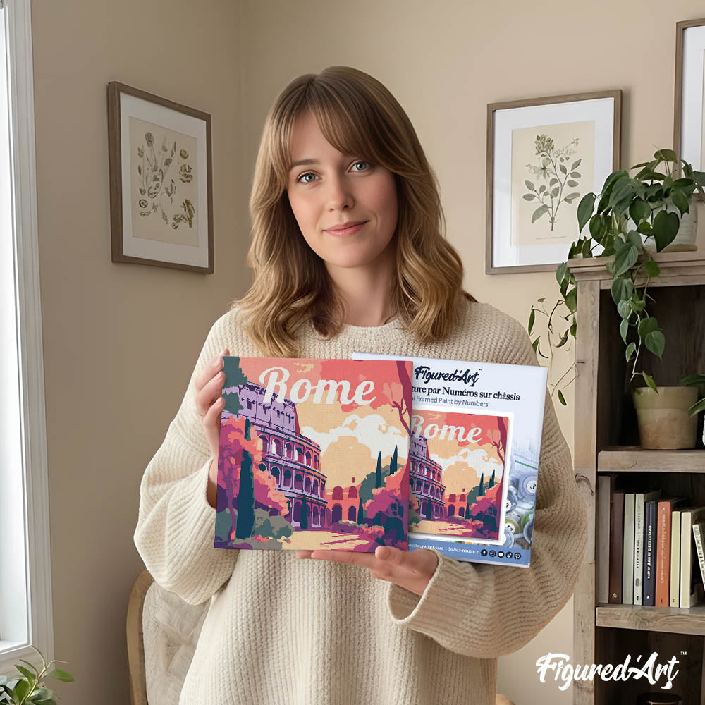 Modèle : Mini Peinture par Numéros 20x20cm avec cadre Colisée de Rome