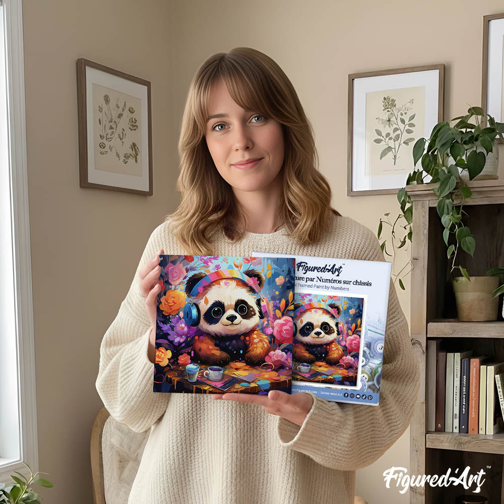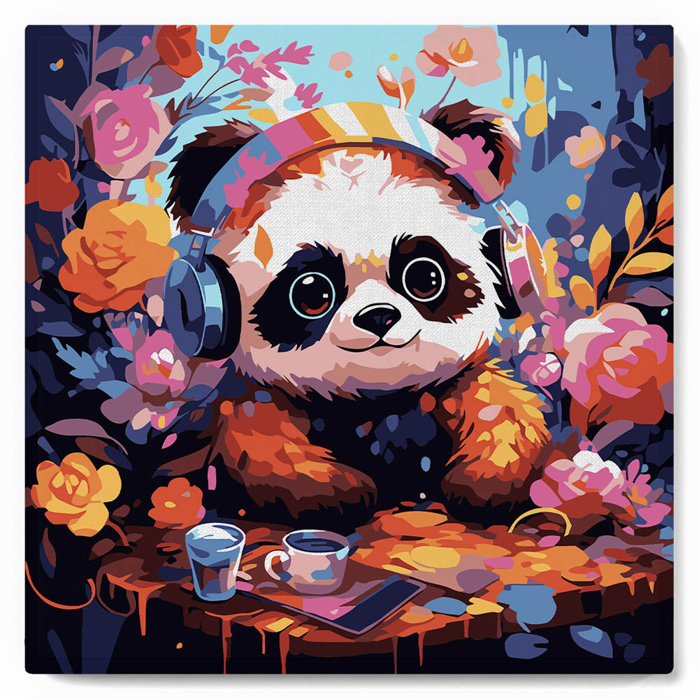Modèle : Mini Peinture par Numéros 20x20cm avec cadre Panda fantaisie et fleurs