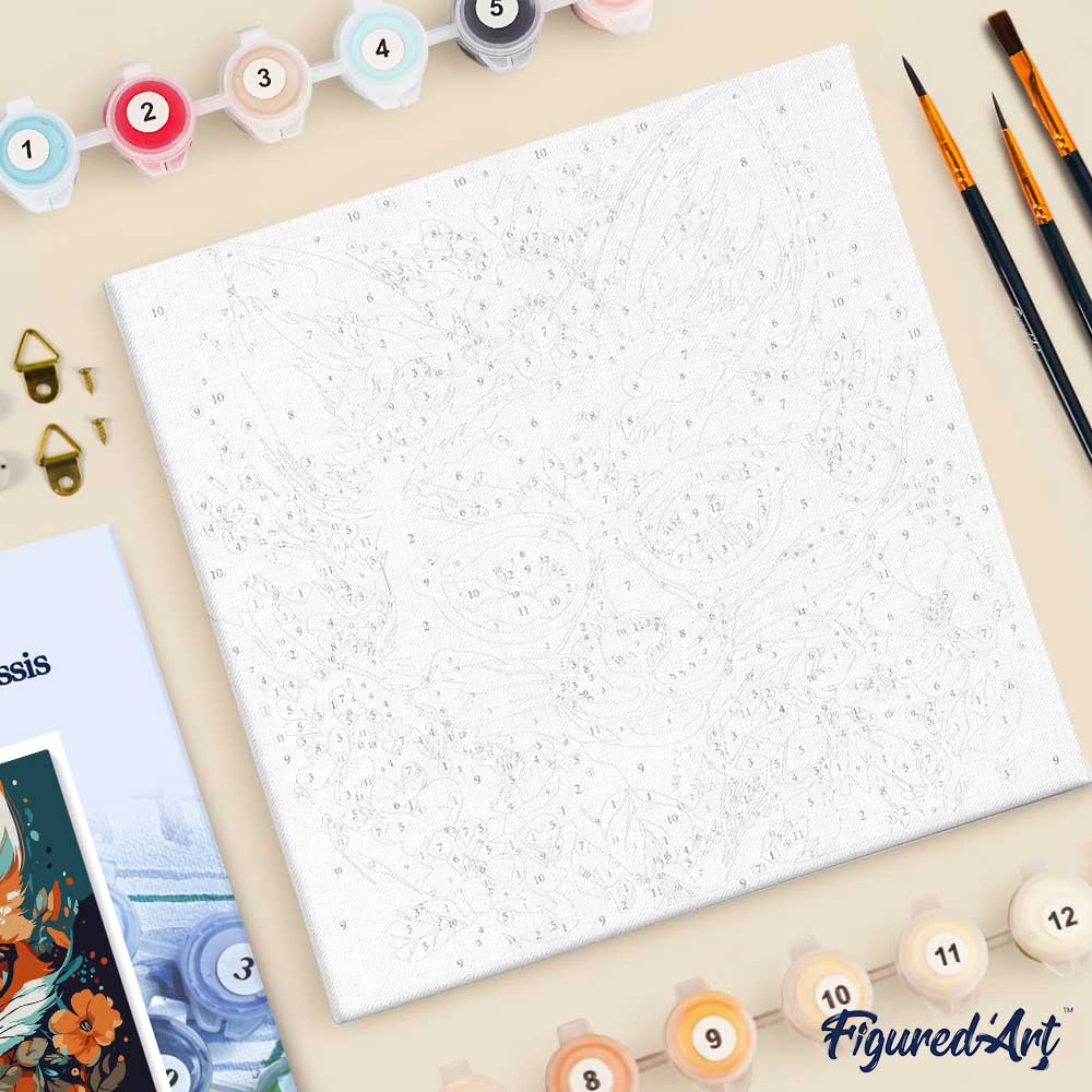 Modèle : Mini Peinture par Numéros 20x20cm avec cadre Renard Fantaisie et Fleurs