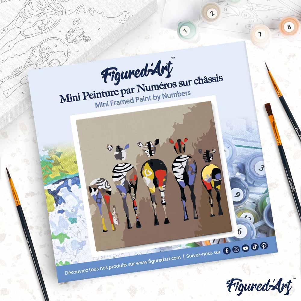 Modèle : Mini Peinture par Numéros 20x20cm avec cadre Zèbres de dos