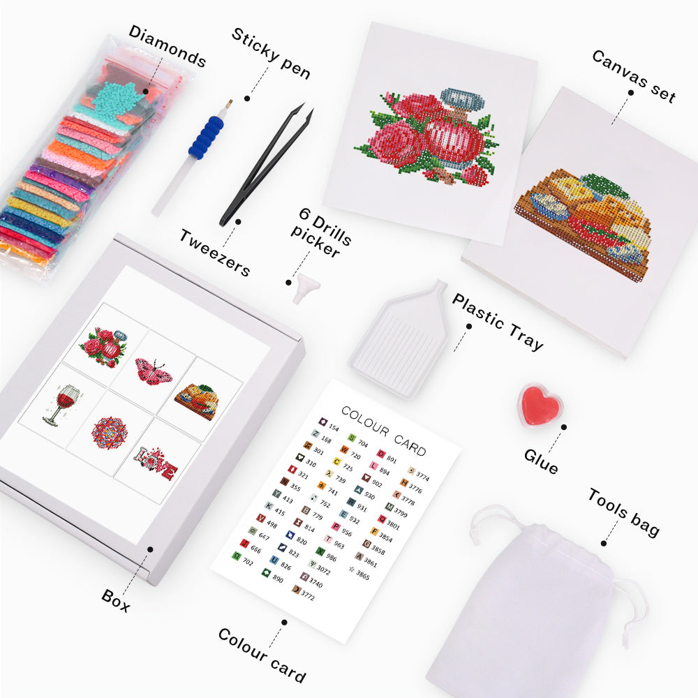Mini Diamond Painting 15x20cm (6 pièces) - Designs Délicats