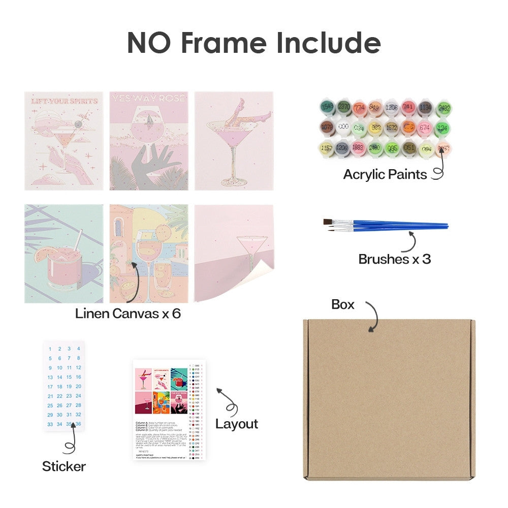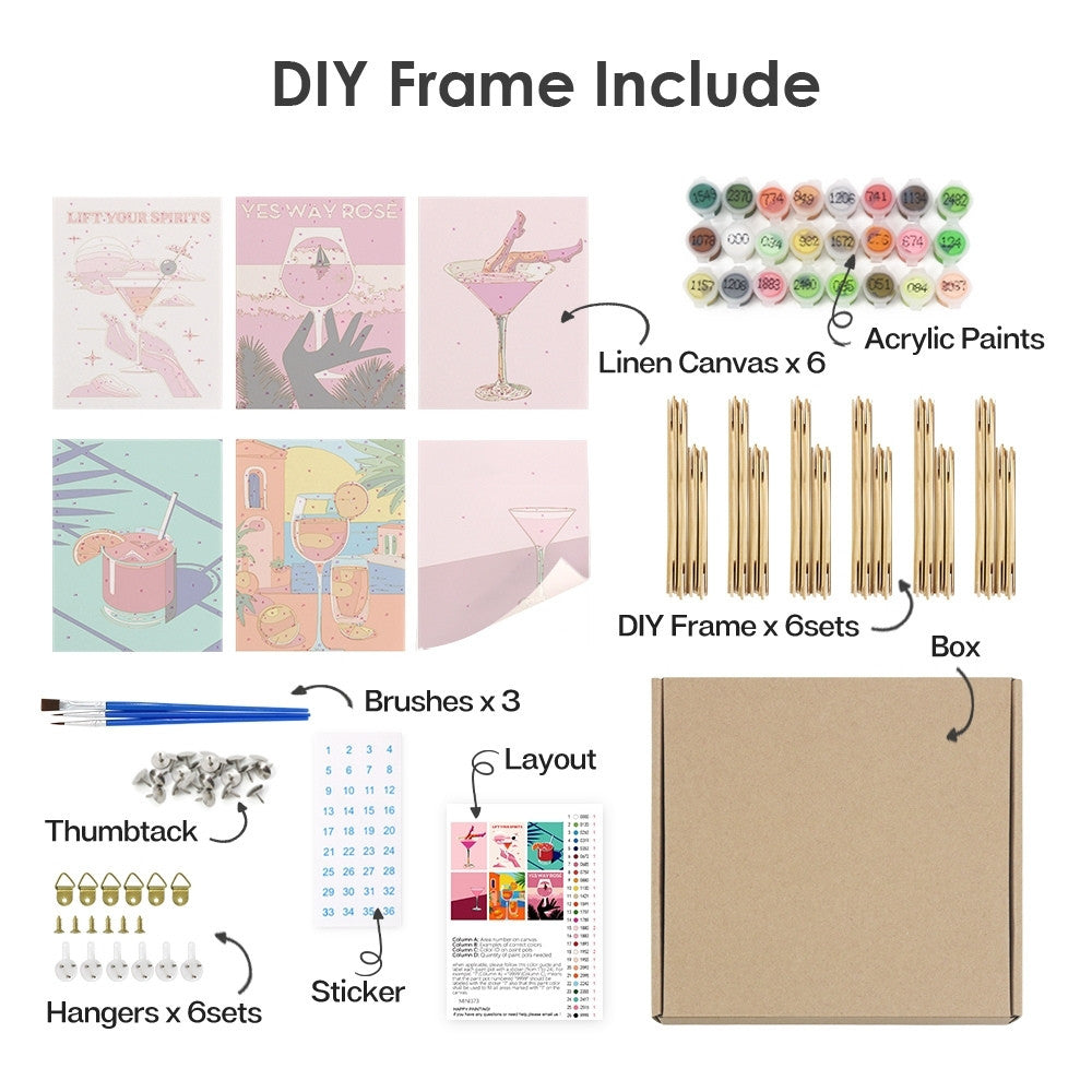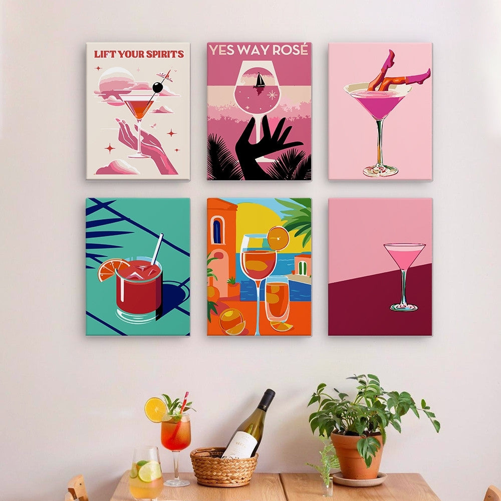 Peinture par numéros – Coffret de 6 toiles | Affiches de Cocktails Chics