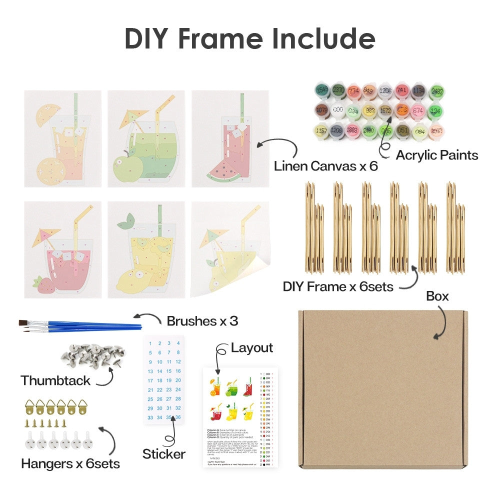 Peinture par numéros – Coffret de 6 toiles | Boissons Fruitées