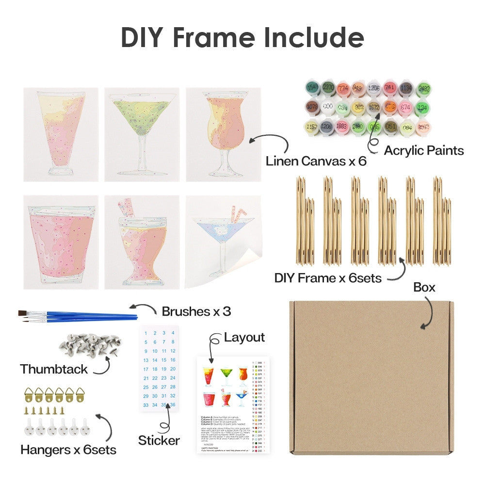 Peinture par numéros – Coffret de 6 toiles | Cocktails Colorés