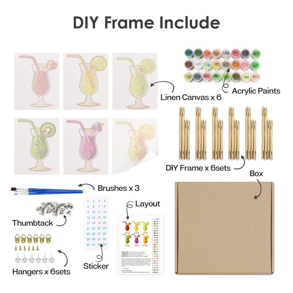 Peinture par numéros – Coffret de 6 toiles | Cocktails Fruités