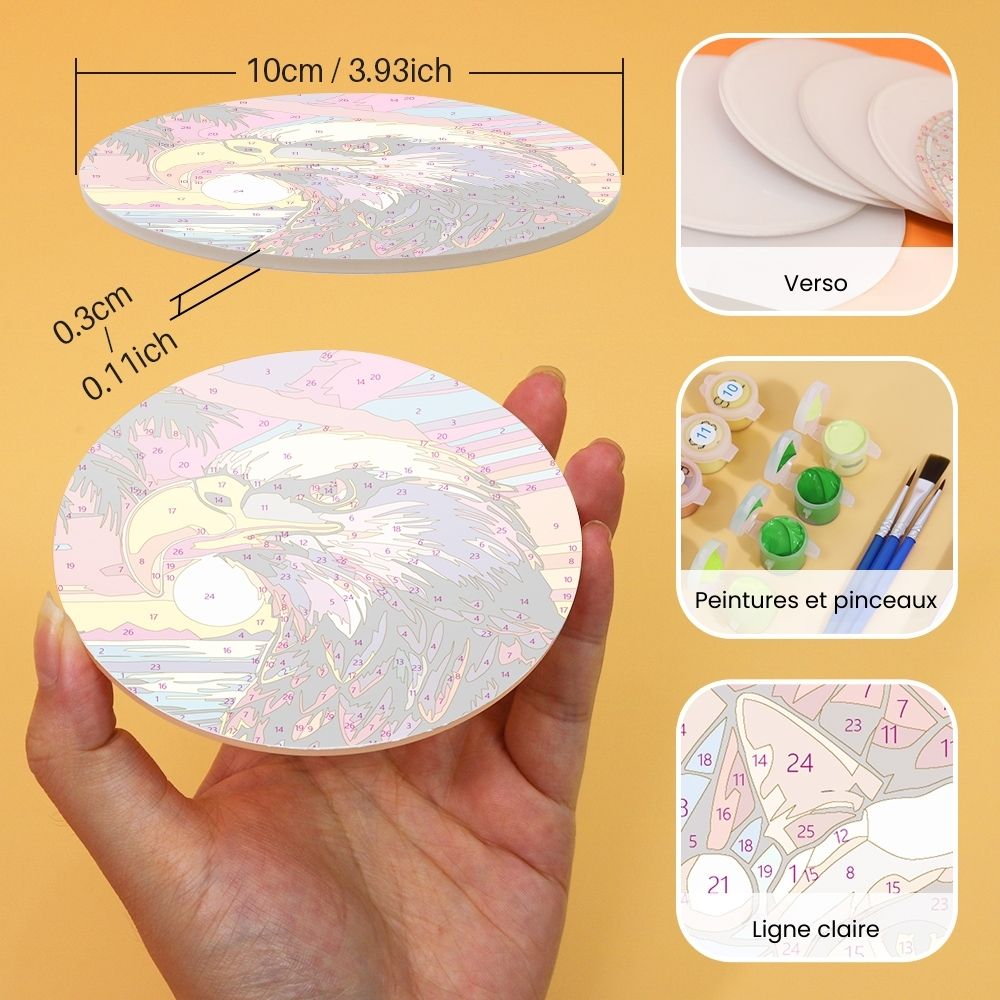 Peinture par numéros Dessous de Verre 15cm (6 pièces) - Faune Pop Art