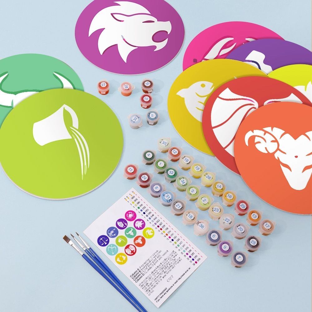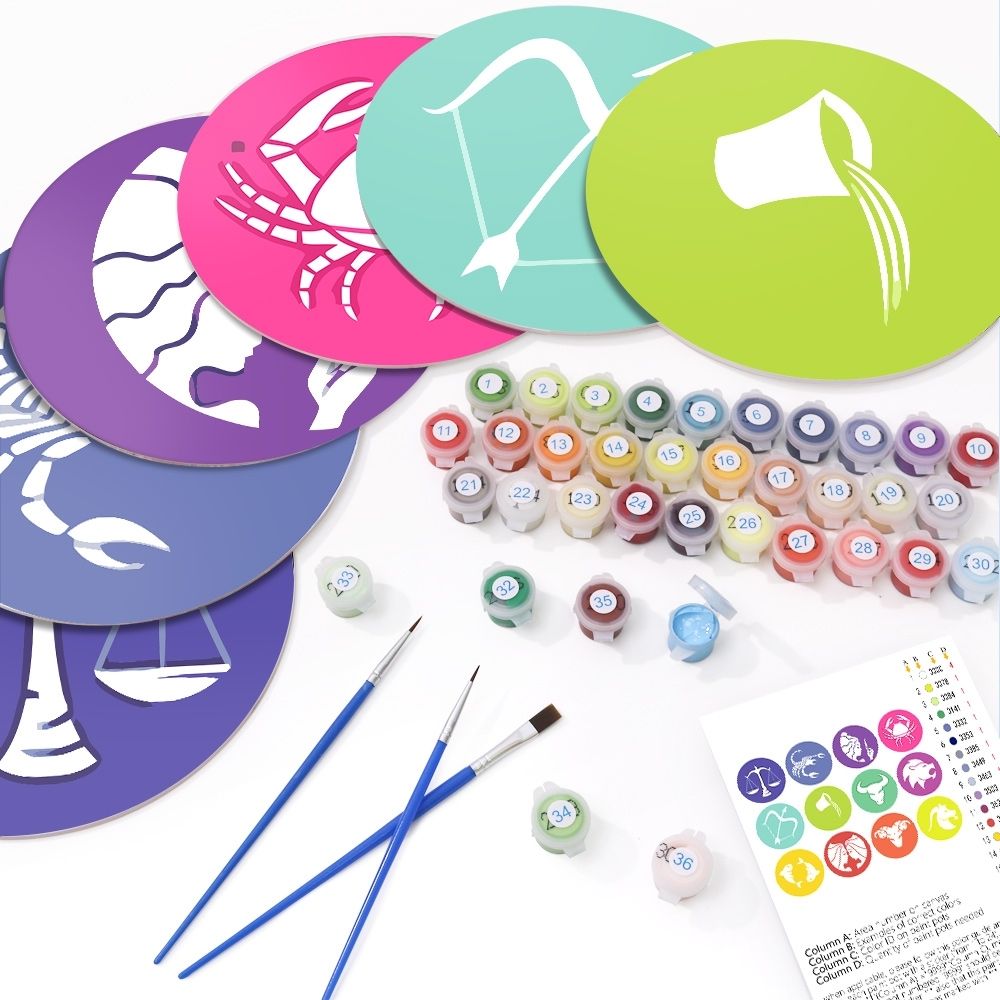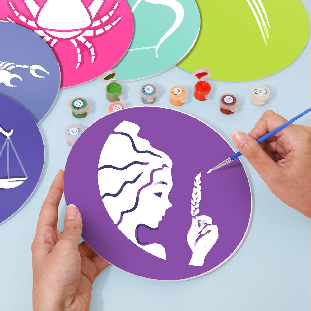 Peinture par numéros Sets de Table 20 cm (12 pièces) - Série Signes du Zodiaque 2