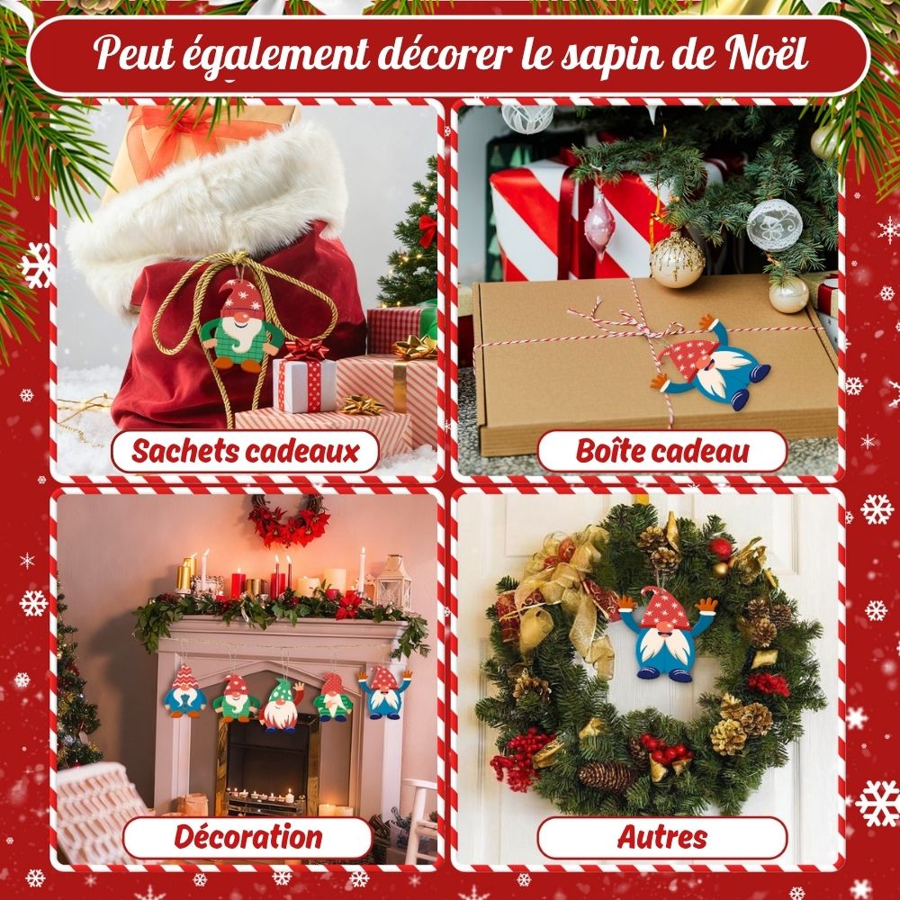 - 8 ornements en bois en forme de moufles et de boîtes cadeaux emballées