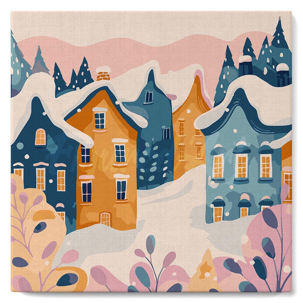 Modèle : Mini Peinture par Numéros 20x20cm avec cadre Beau village d'hiver