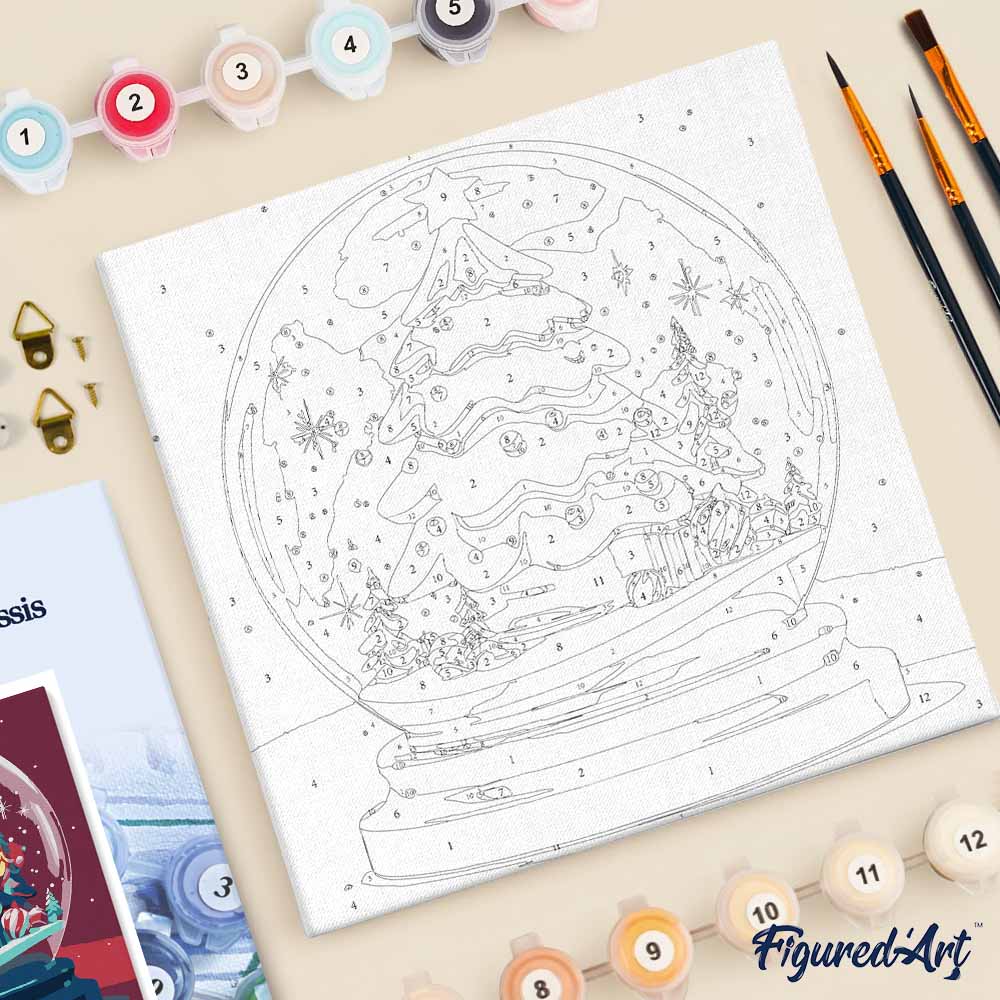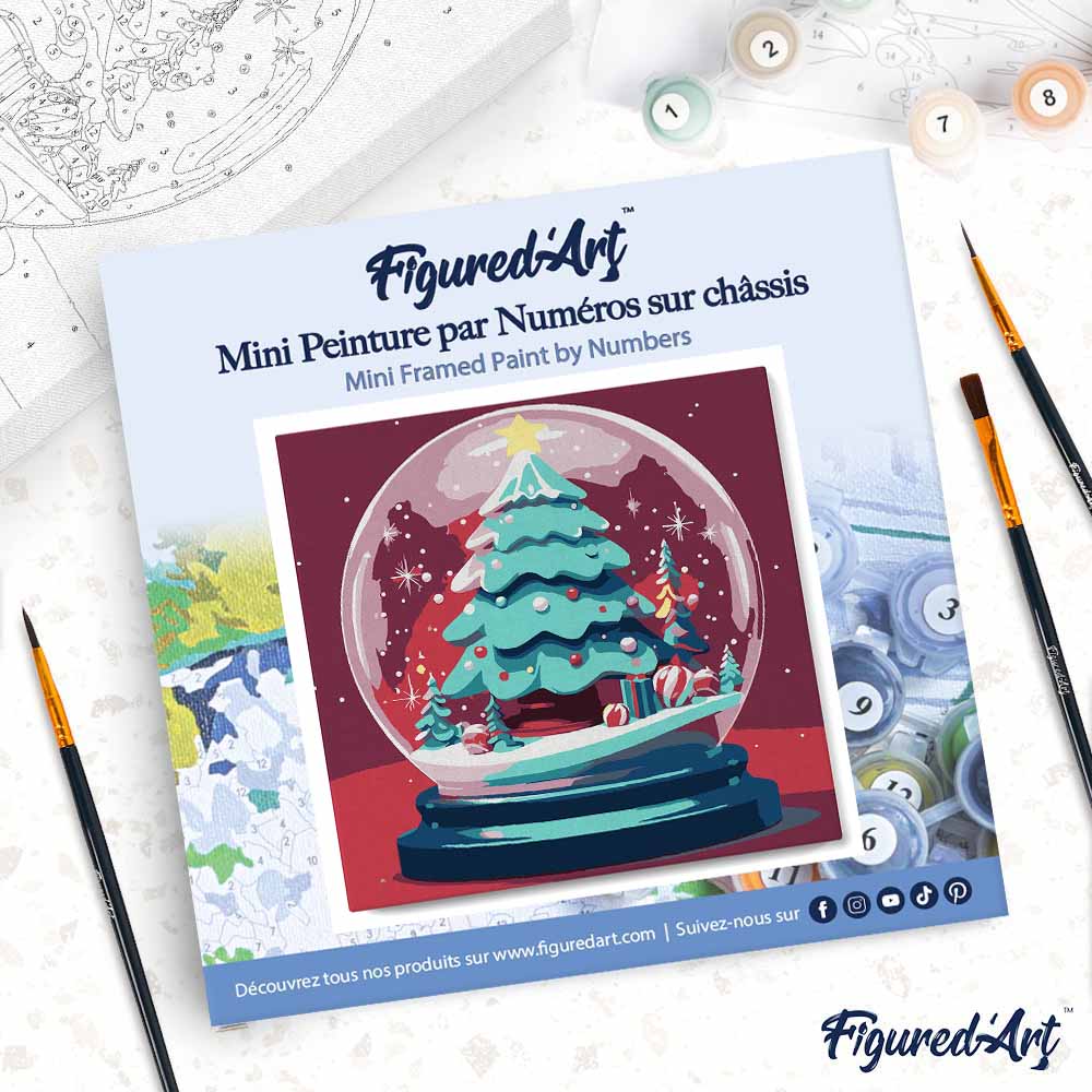 Modèle : Mini Peinture par Numéros 20x20cm avec cadre Boule à Neige et Sapin de Noël