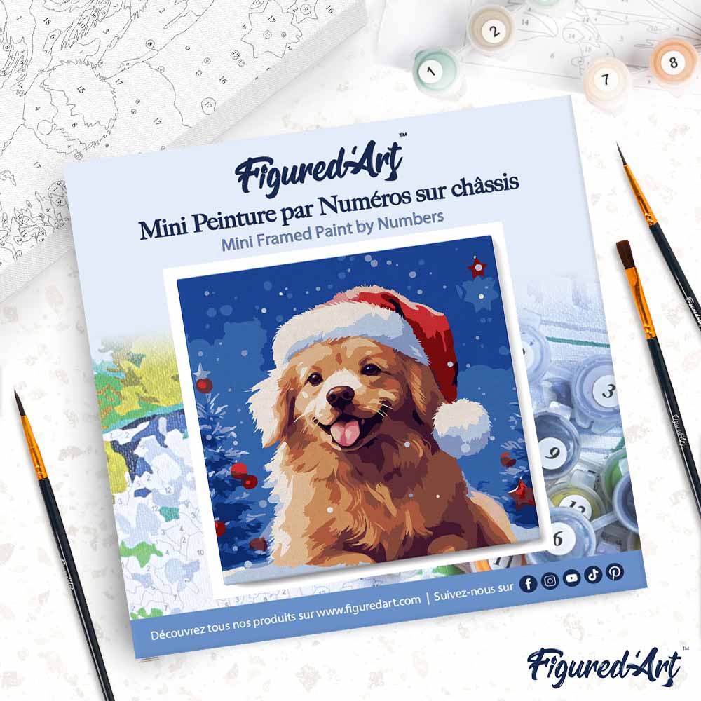 Mini Peinture par Numéros 20x20cm avec cadre Chien Mignon à Noël