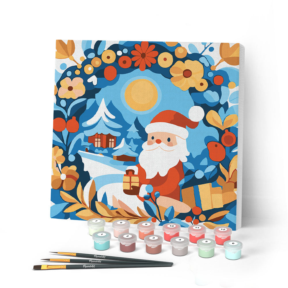 Modèle : Mini Peinture par Numéros 20x20cm avec cadre Couronne et Père Noël