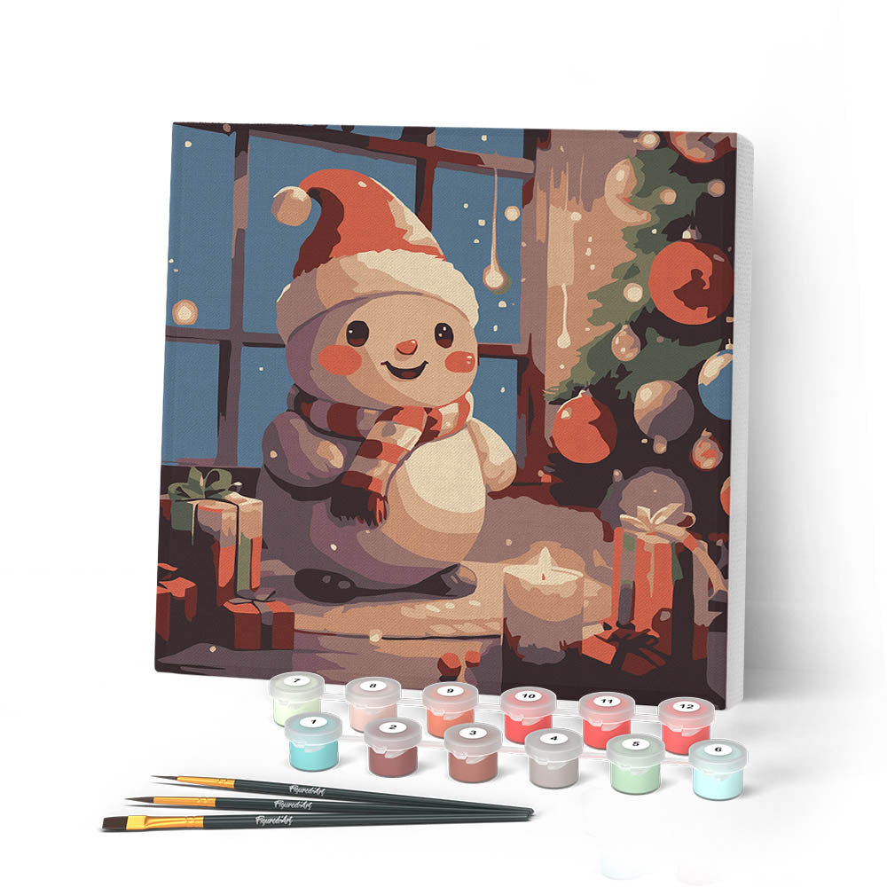 Modèle : Mini Peinture par Numéros 20x20cm avec cadre Joyeux Bonhomme de Neige dans la Chambre