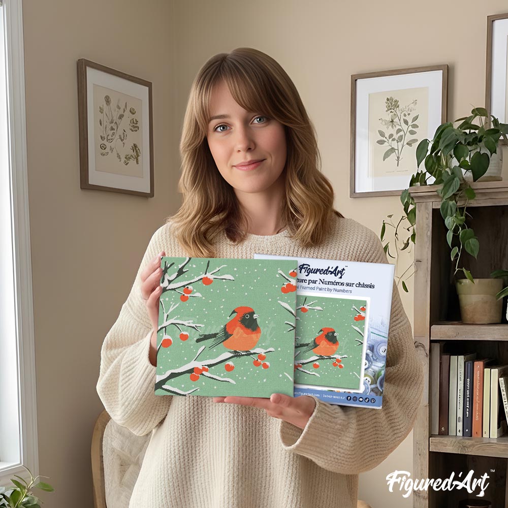 Modèle : Mini Peinture par Numéros 20x20cm avec cadre Oiseau Rouge d'Hiver