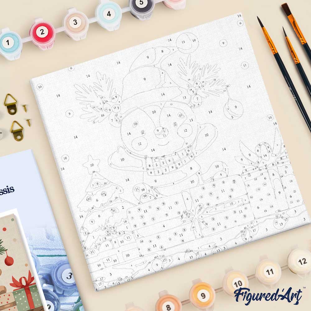 Modèle : Mini Peinture par Numéros 20x20cm avec cadre Ours Cadeau de Fête