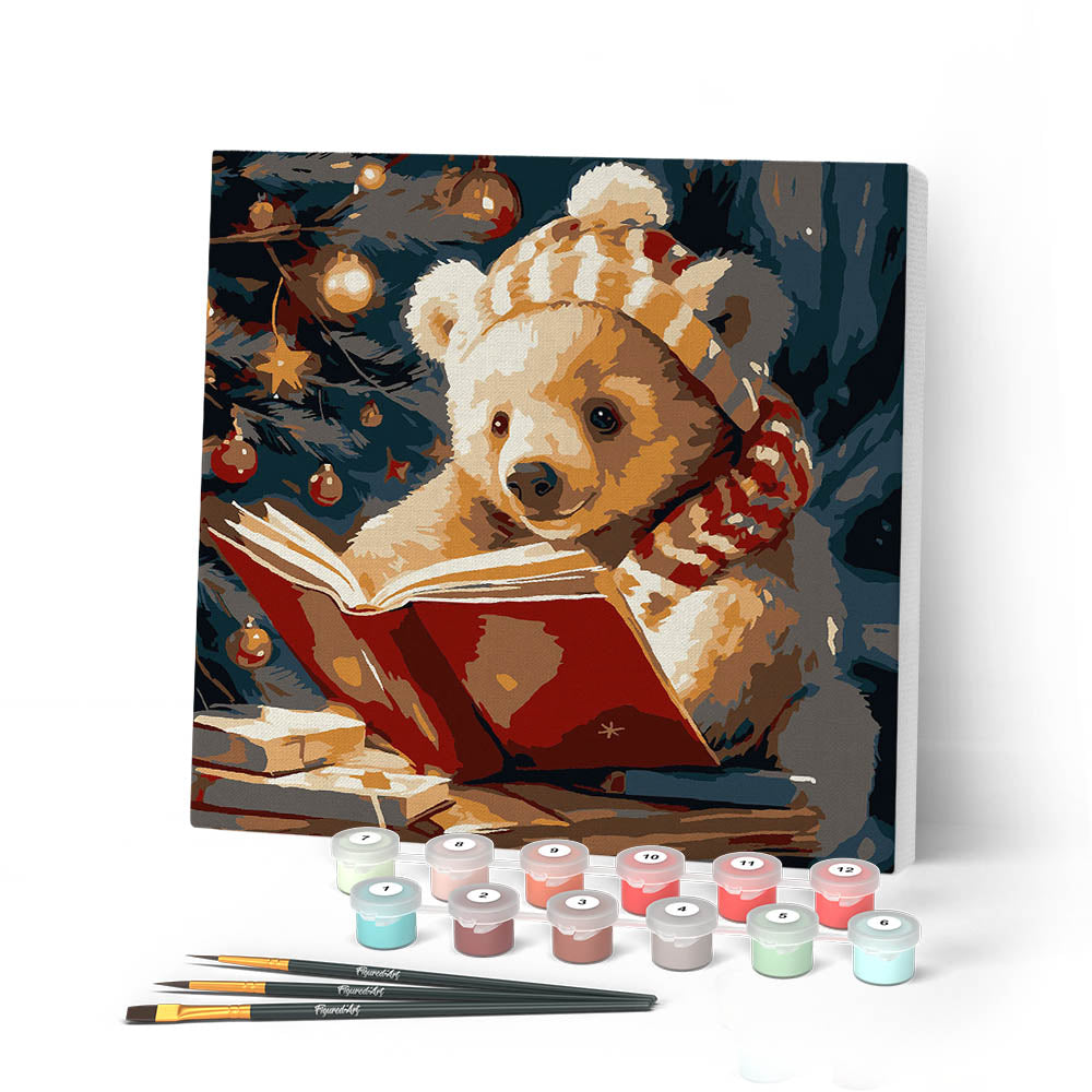 Modèle : Mini Peinture par Numéros 20x20cm avec cadre Ours Mignon en train de Lire
