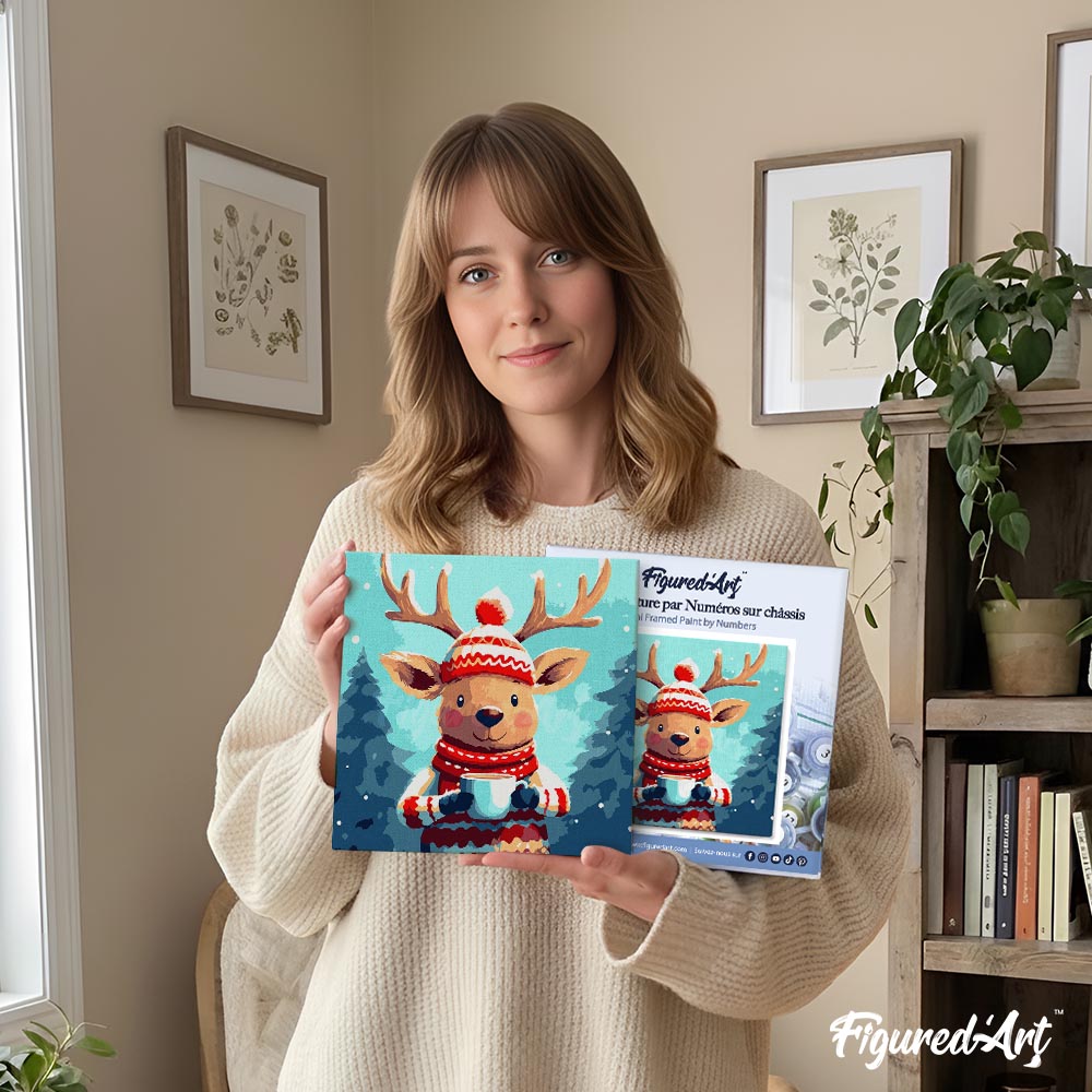 Mini Peinture par Numéros 20x20cm avec cadre Renne Douillet