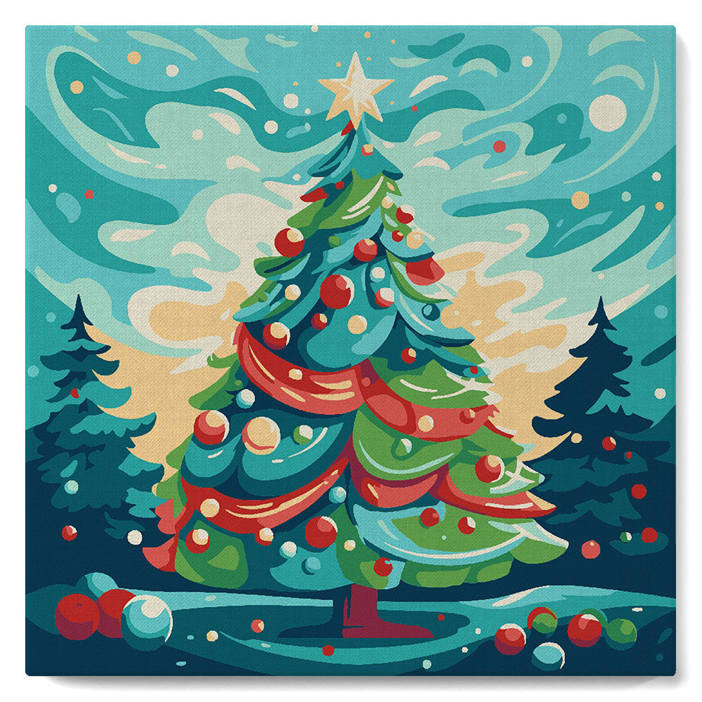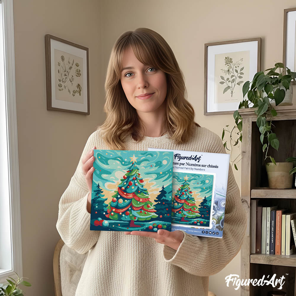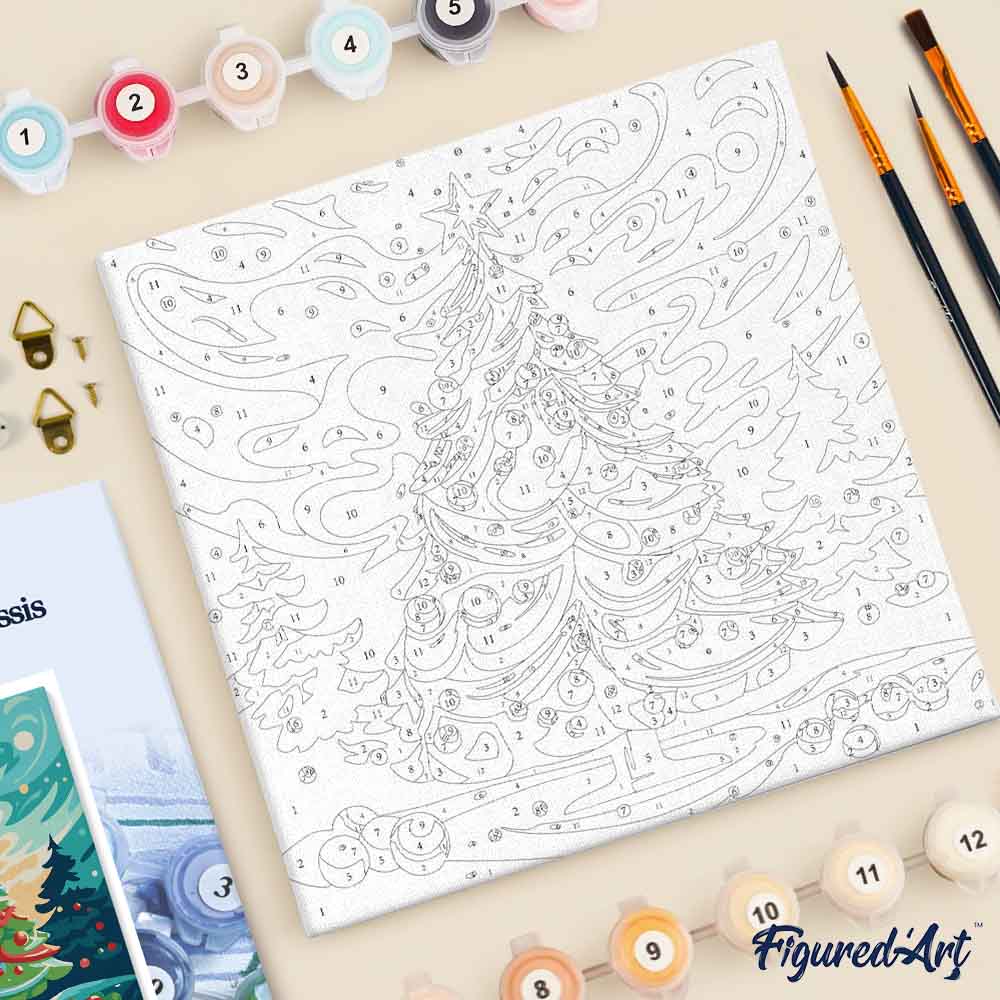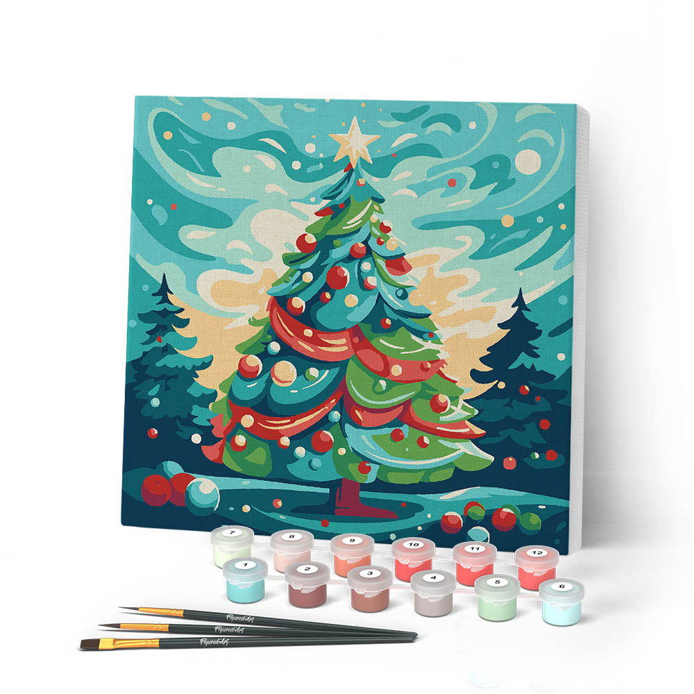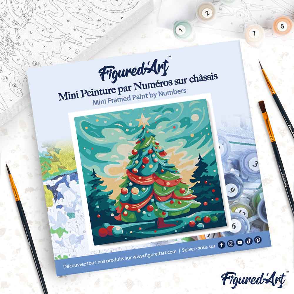 Modèle : Mini Peinture par Numéros 20x20cm avec cadre Sapin de Noël Abstrait