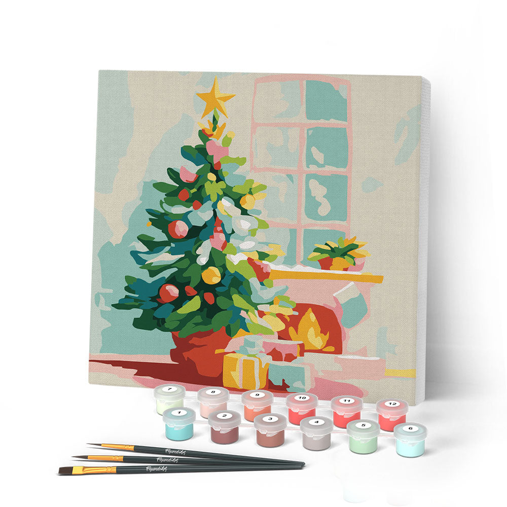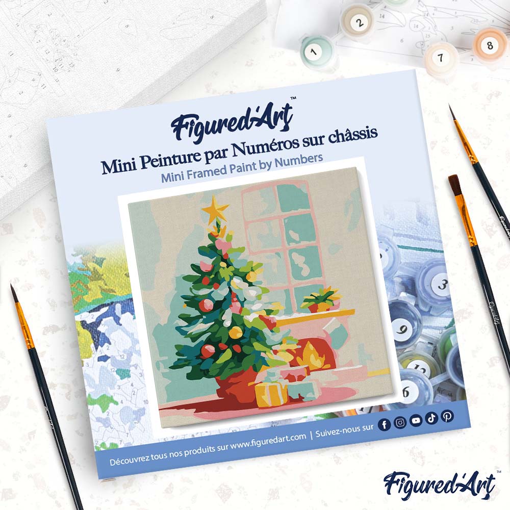 Mini Peinture par Numéros 20x20cm avec cadre Sapin et Cheminée