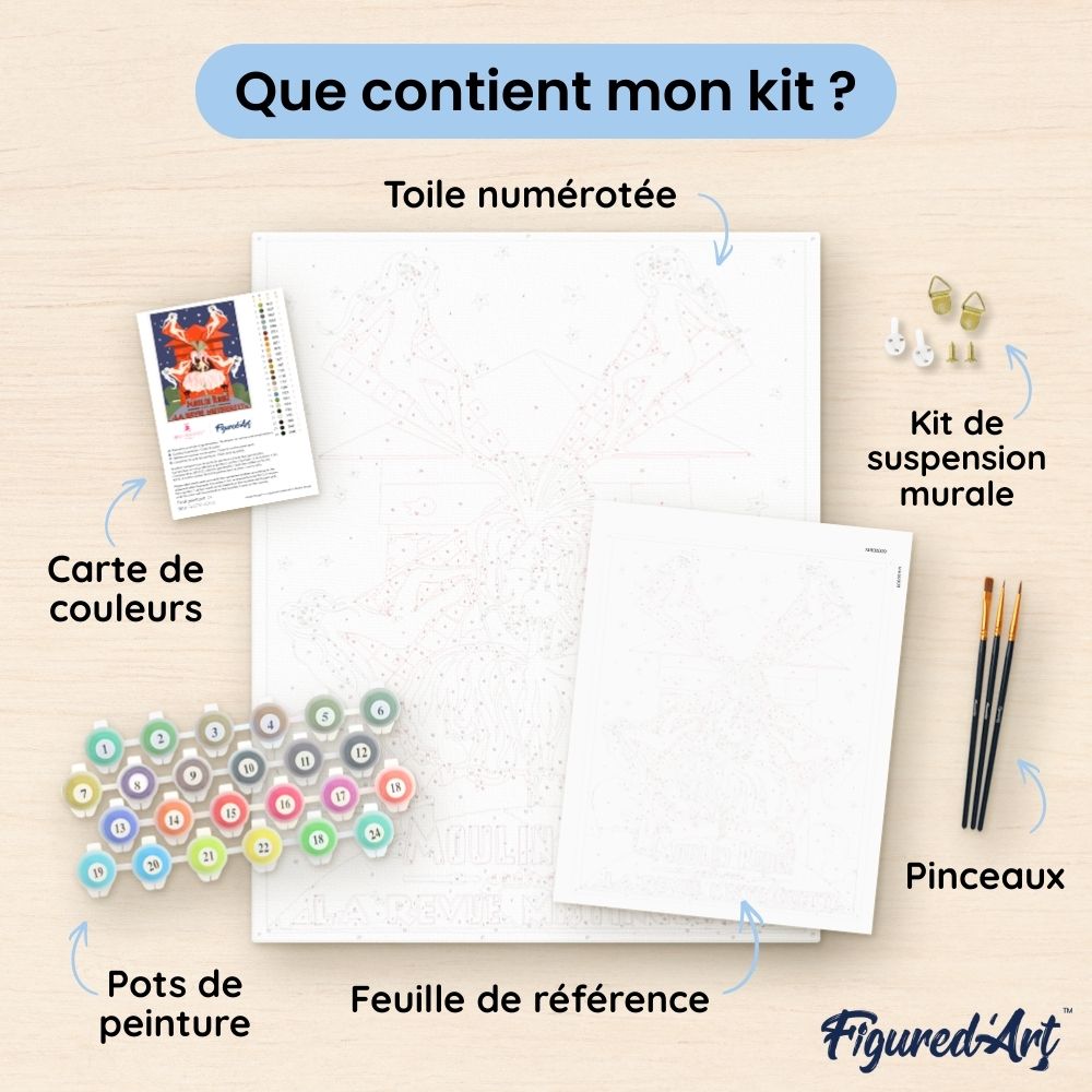 Ce kit de peinture par numéros contient tout le nécessaire pour réaliser votre œuvre :
