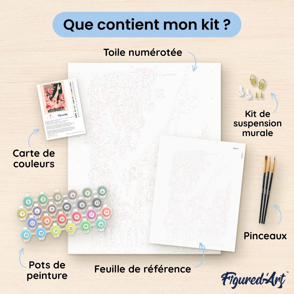 Ce kit de peinture par numéros contient tout le nécessaire pour réaliser votre œuvre :