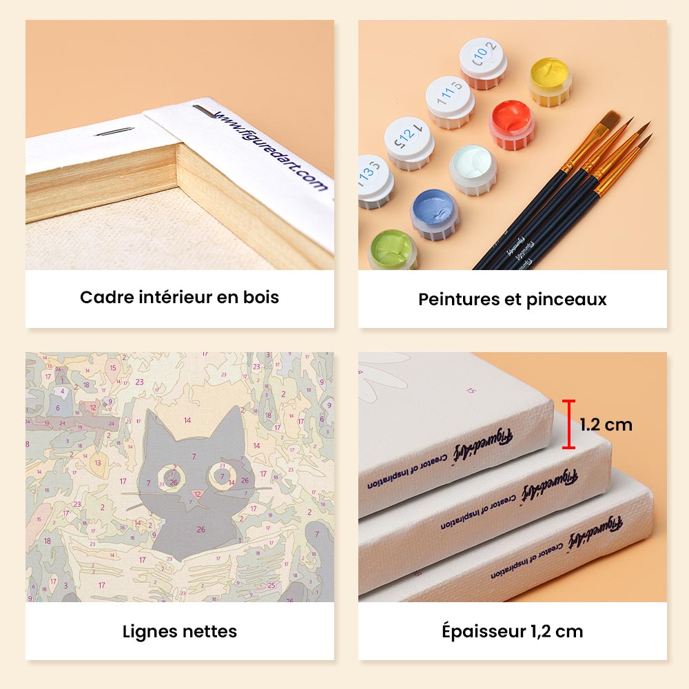 Libérez votre créativité avec la Mini Peinture par Numéros Figured'Art, comprenant petites toiles en lin numérotées. Cette expérience relaxante de peinture par numéro est accessible à tous, parfaite pour exprimer votre côté artistique, décorer votre intérieur ou offrir un moment créatif à une personne chère.