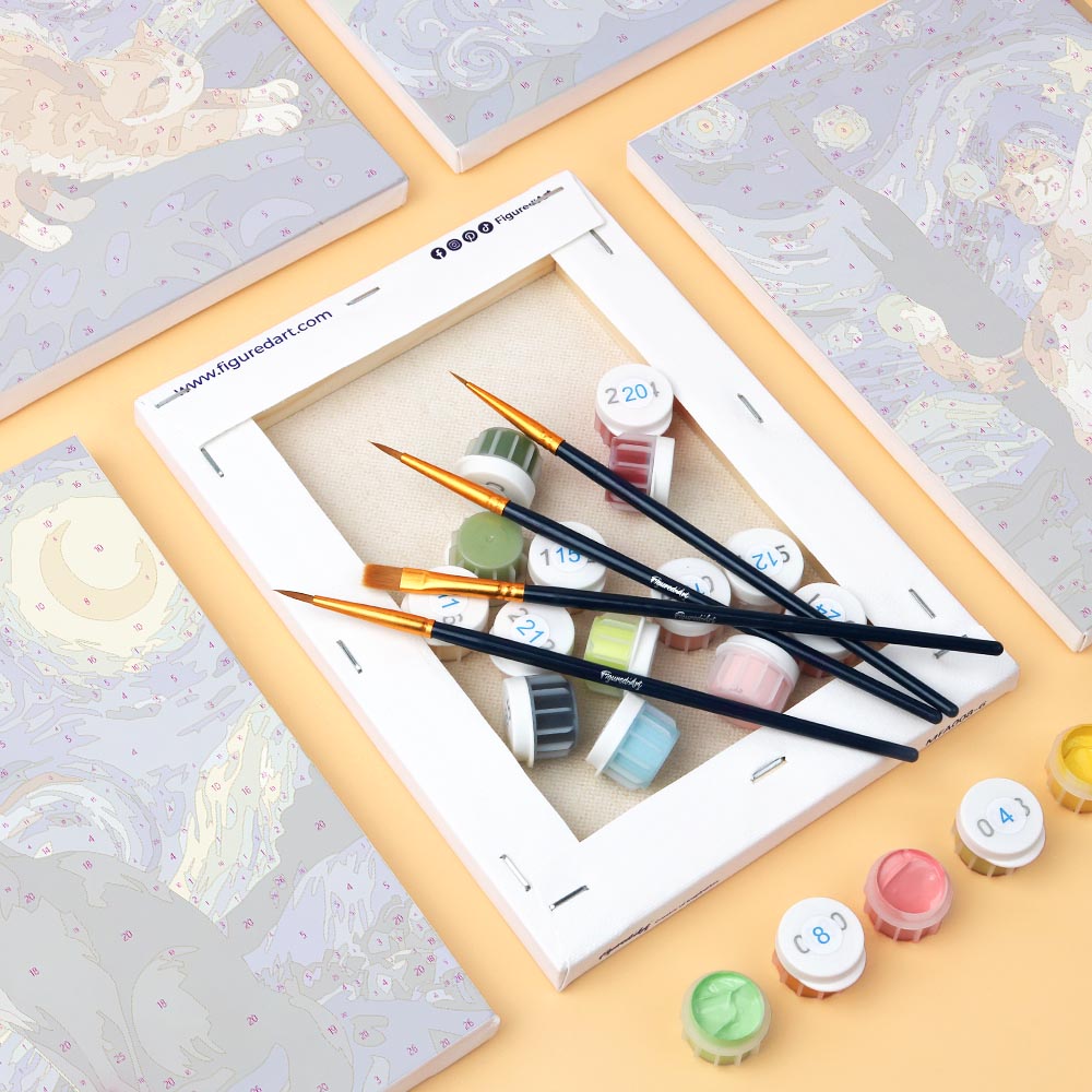 Peindre par numéro c'est un moyen simple et ludique qui vous permet de commencer facilement à peindre des œuvres et perfectionner votre technique de peinture à l'aide de kits prêts à l'emploi.