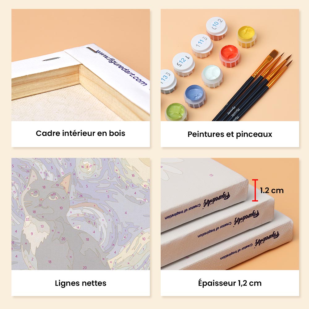 Libérez votre créativité avec la Mini Peinture par Numéros Figured'Art, comprenant petites toiles en lin numérotées. Cette expérience relaxante de peinture par numéro est accessible à tous, parfaite pour exprimer votre côté artistique, décorer votre intérieur ou offrir un moment créatif à une personne chère.