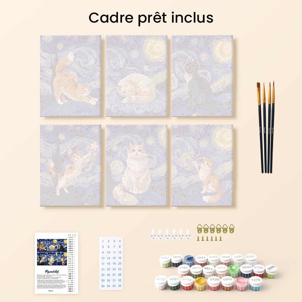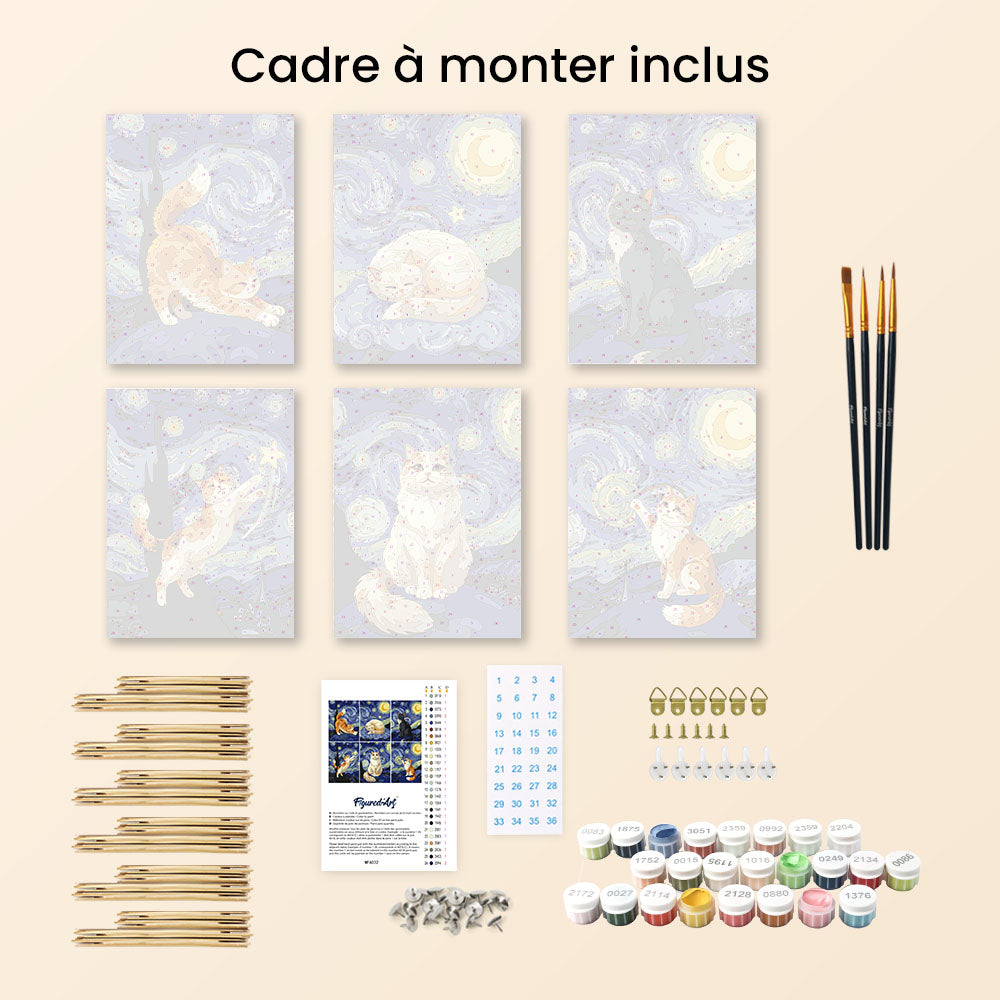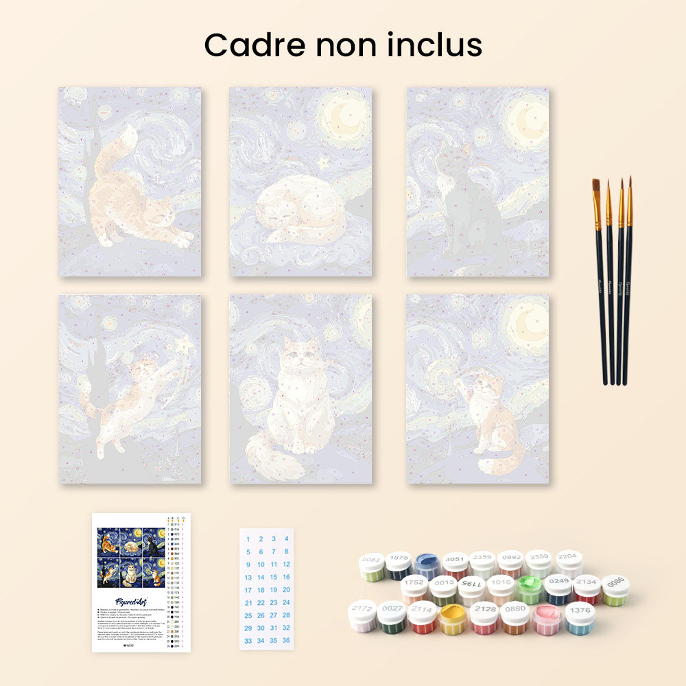 Mini Peinture par numéros 15x20cm (6 pièces) - Chats Nuit Étoilée Figured'Art