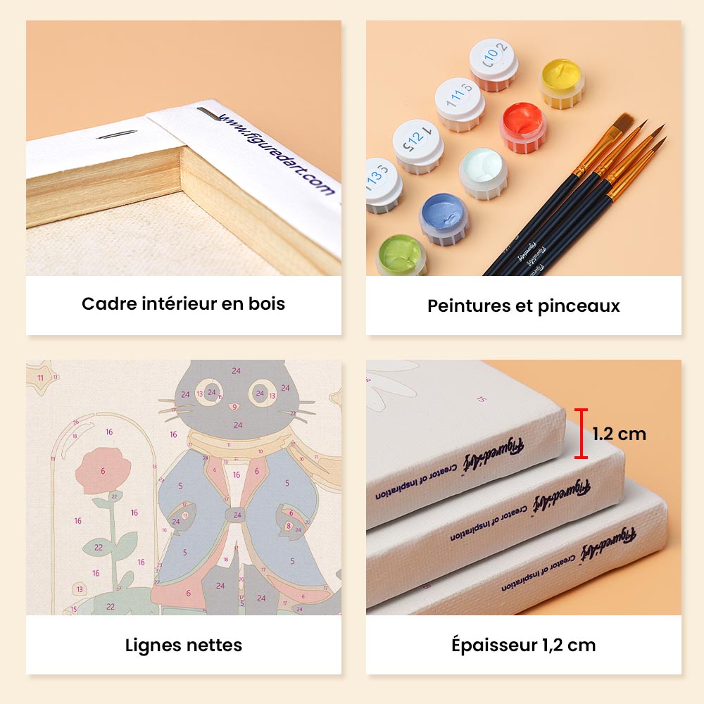 Libérez votre créativité avec la Mini Peinture par Numéros Figured'Art, comprenant petites toiles en lin numérotées. Cette expérience relaxante de peinture par numéro est accessible à tous, parfaite pour exprimer votre côté artistique, décorer votre intérieur ou offrir un moment créatif à une personne chère.