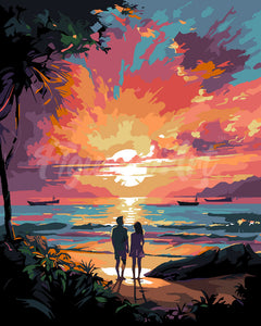COUCHER DE SOLEIL, PLAGE OU MER EN PEINTURE PAR NUMÉRO