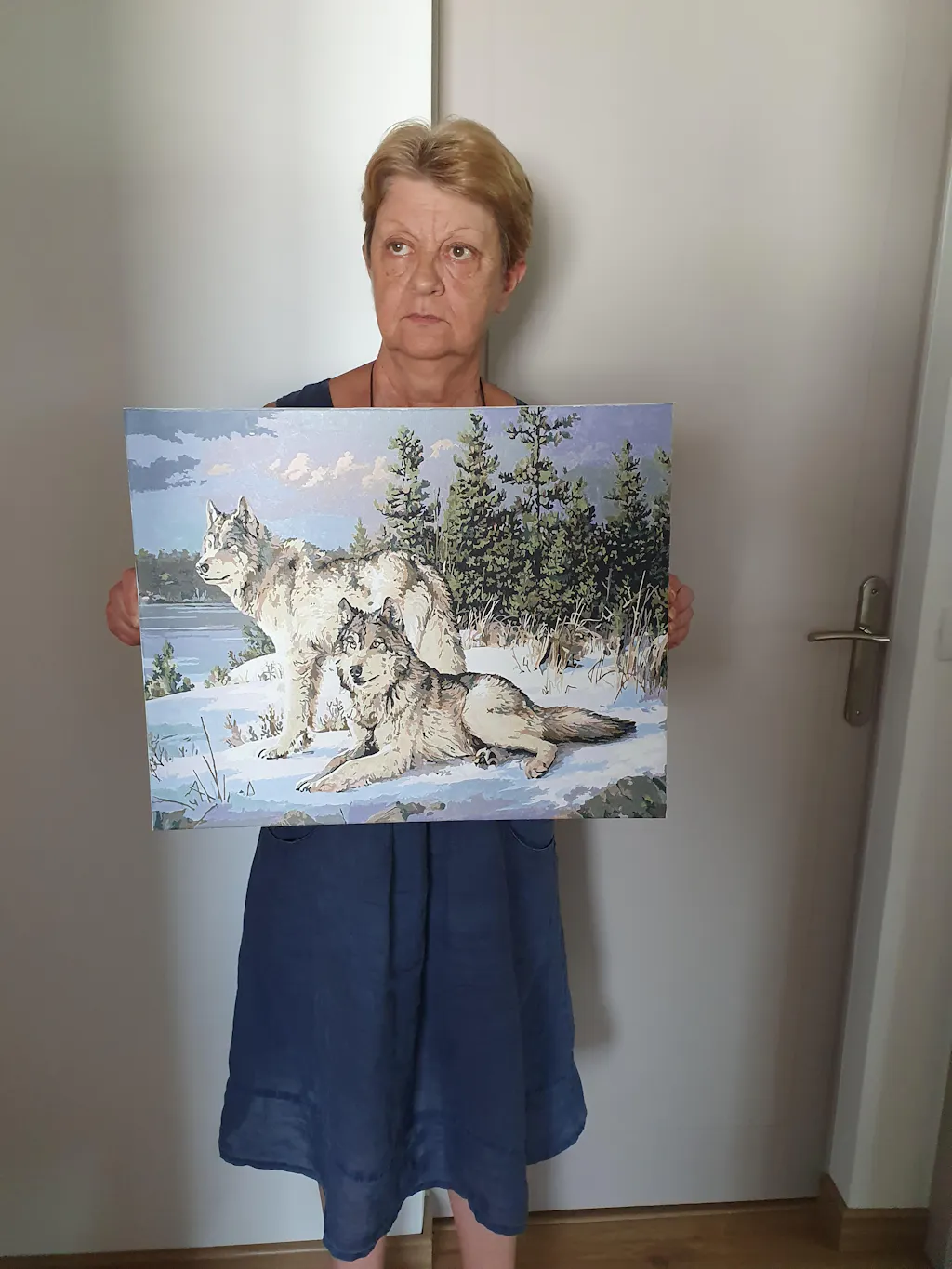 Kit complet de peinture par numéro avec toile roulée sans plis.