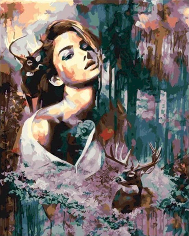peinture par numéros | Femme et Cerf | animaux, complexe, nouveautés, portrait, rennes et biches | FiguredArt