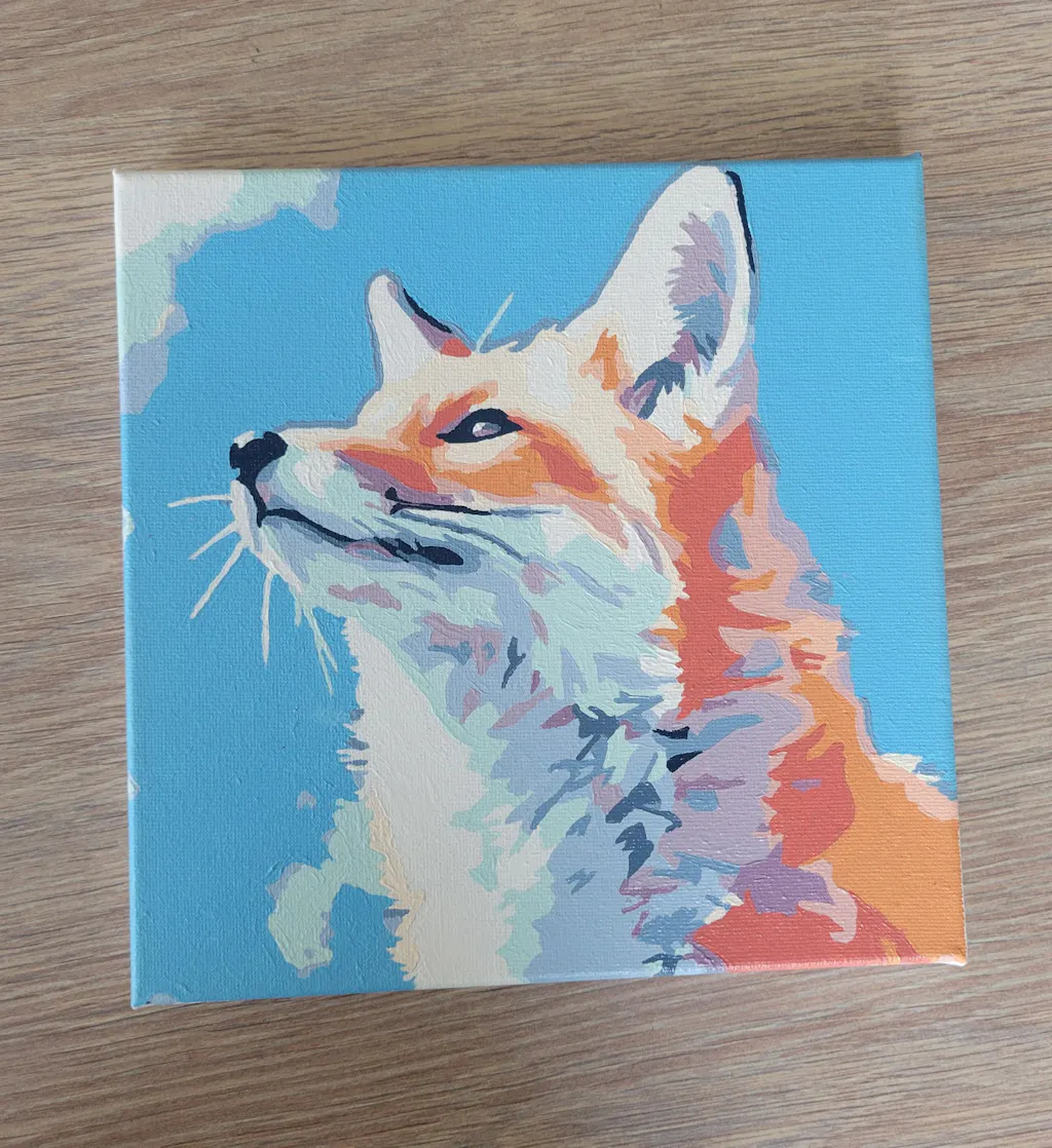 Modèle : Mini Peinture par Numéros 20x20cm avec cadre Renard et ciel bleu