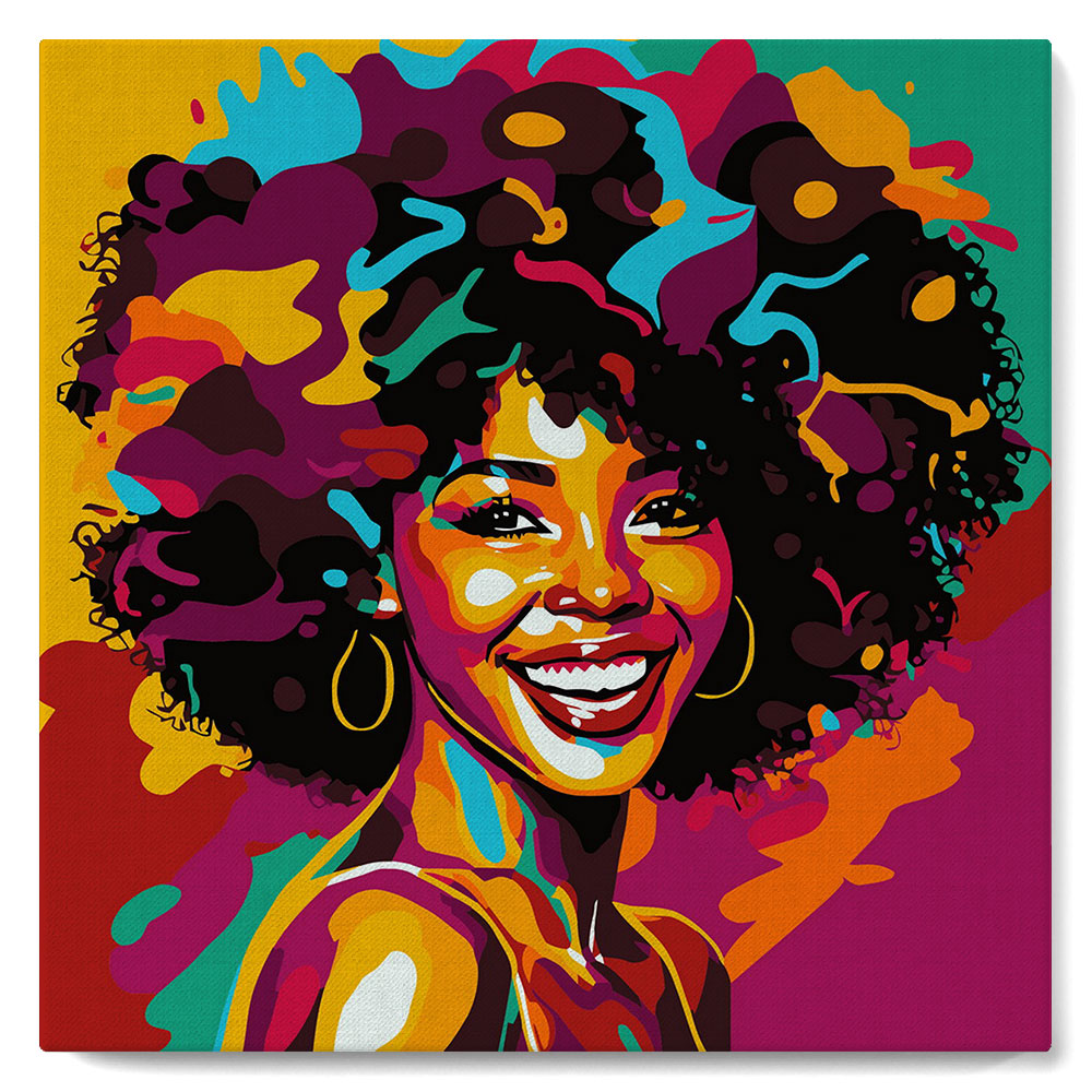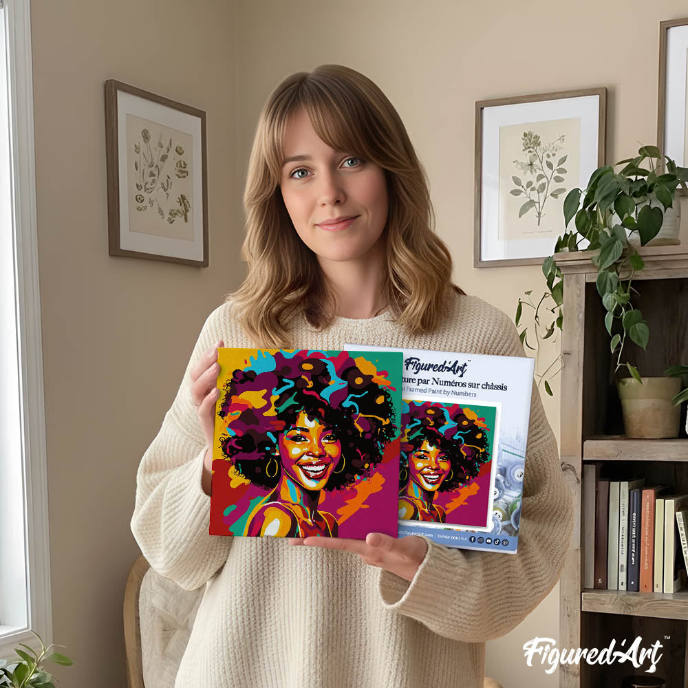 Mini Peinture par Numéros 20x20cm avec cadre Femme Afro Pop Art