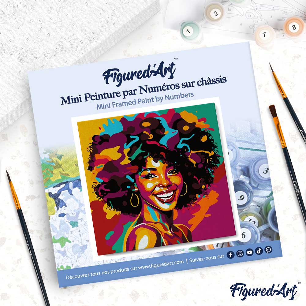 Modèle : Mini Peinture par Numéros 20x20cm avec cadre Femme Afro Pop Art