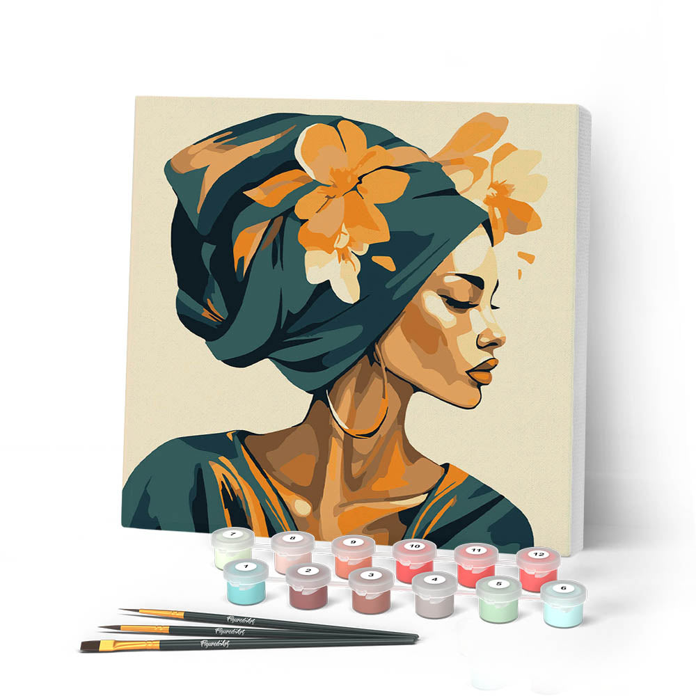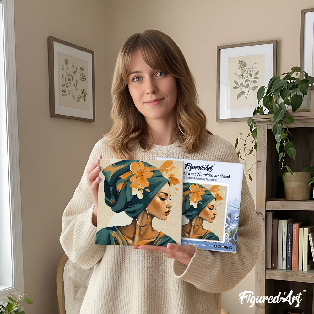 Modèle : Mini Peinture par Numéros 20x20cm avec cadre Femme au turban floral