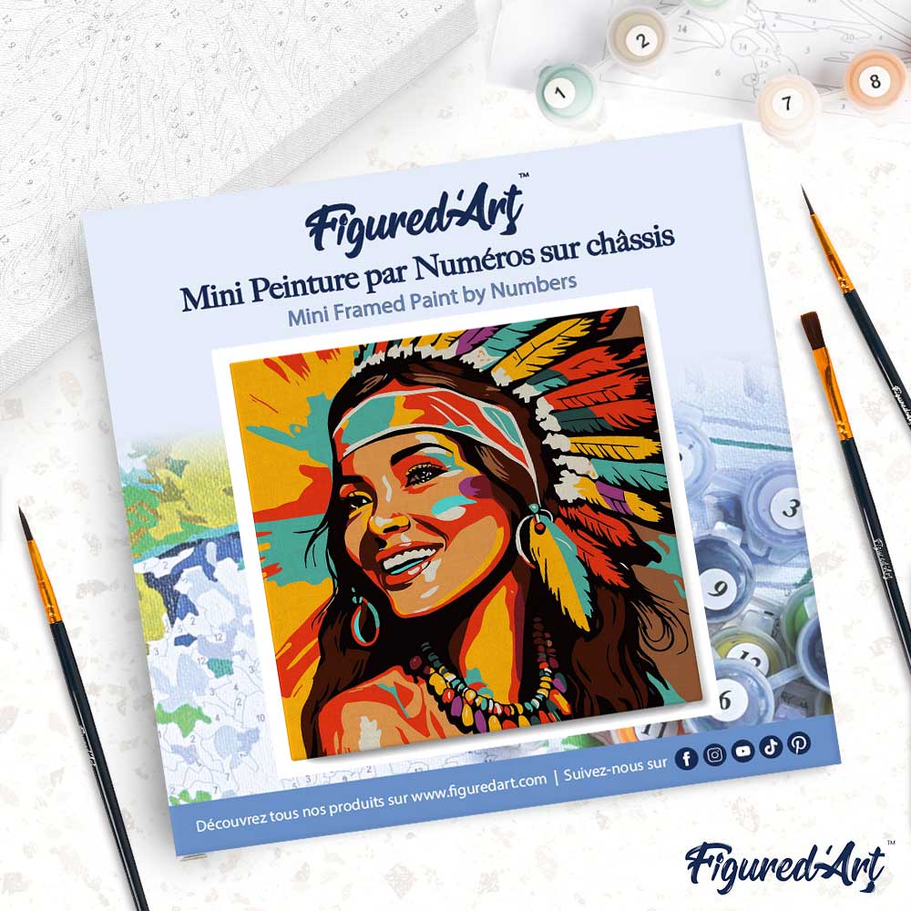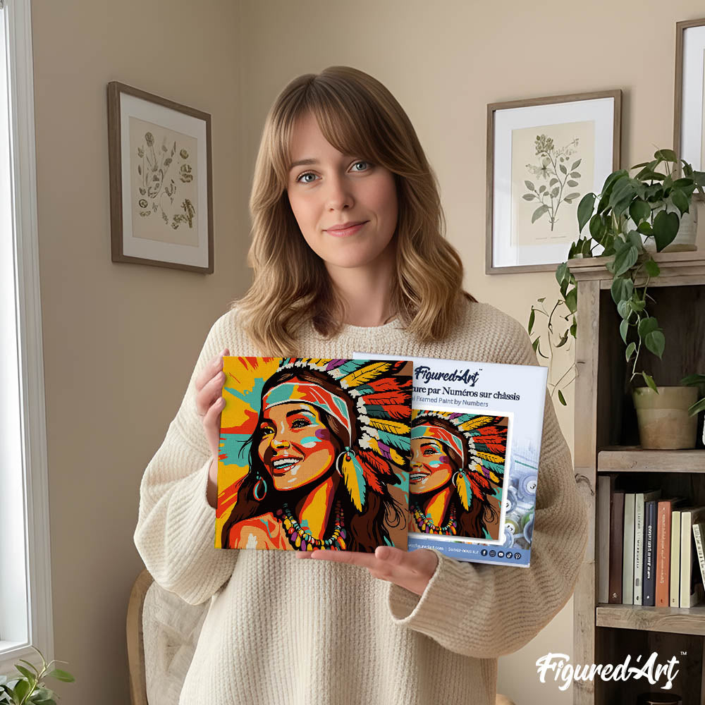Modèle : Mini Peinture par Numéros 20x20cm avec cadre Femme Native Pop Art